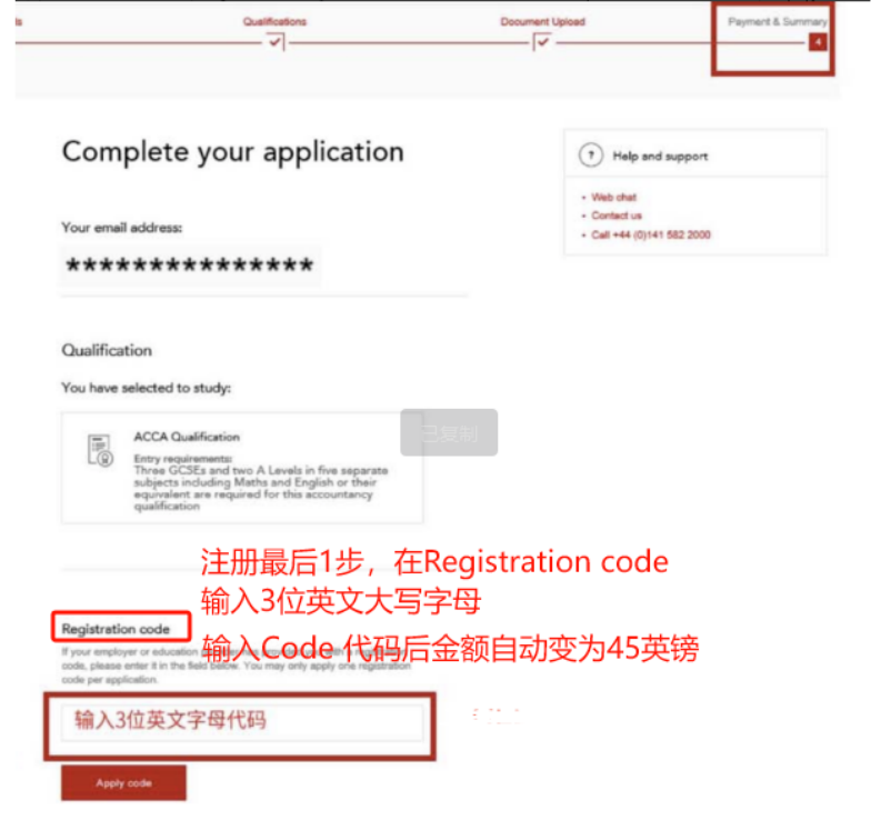 3.注册ACCA ID 时填写指定的优惠Code代码