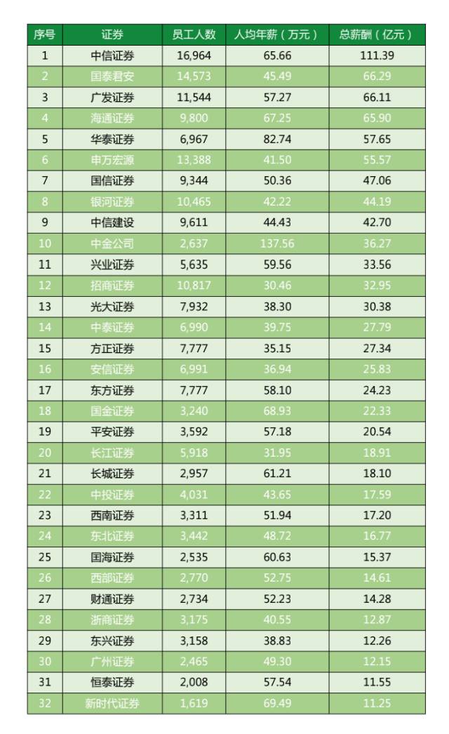 中金人均待遇最高,高达1,375,600元!就连前三十中人均薪酬较少的招商证券都有304,600元的平均薪酬!