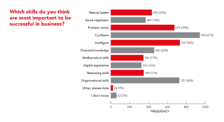 年轻人对技能的看法似乎反映了人们对传统学习方式态度的改变。几乎一半(47%)的人认为自信是商业成功的最重要技能,而36%人则认为自信是智力。
