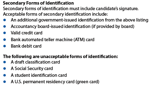 手册中对二重身份证明的要求,关键来说,是必须含有考生的签名(拼音)。这其中中国考生最方便准备的是银行卡。手册中也罗列了一些不能接受的身份证明给大家参考。