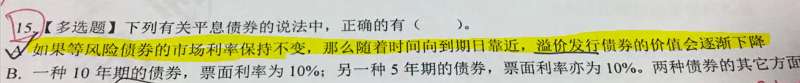 连续付息的情况下是平滑下降。不是连续付息的平息债券,就是波动下降。题目中没有说连续付息,所以是波动下降。