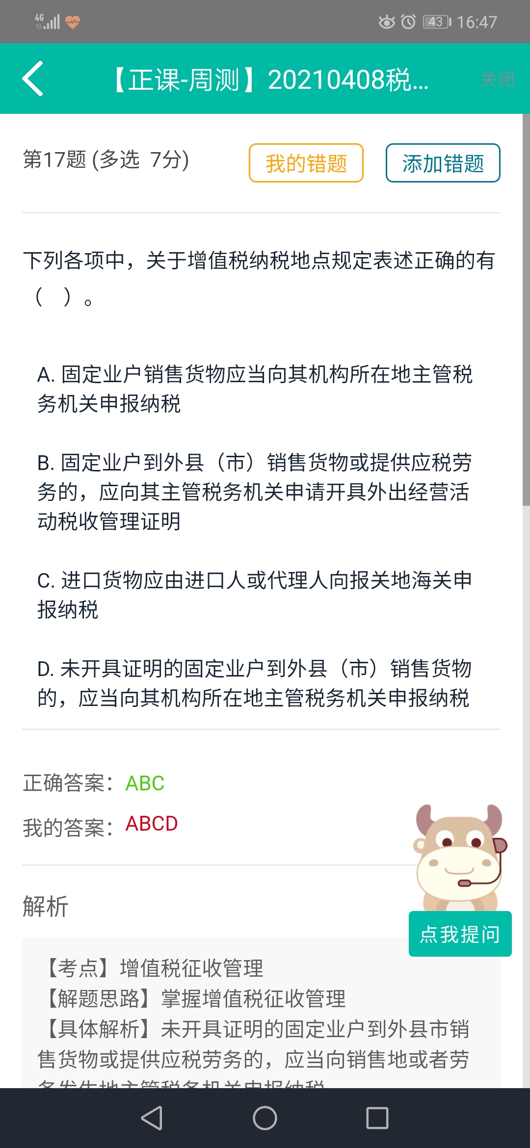 选项B、D有什么区别呀?是不是不论是否登记,都在在外县市交税?