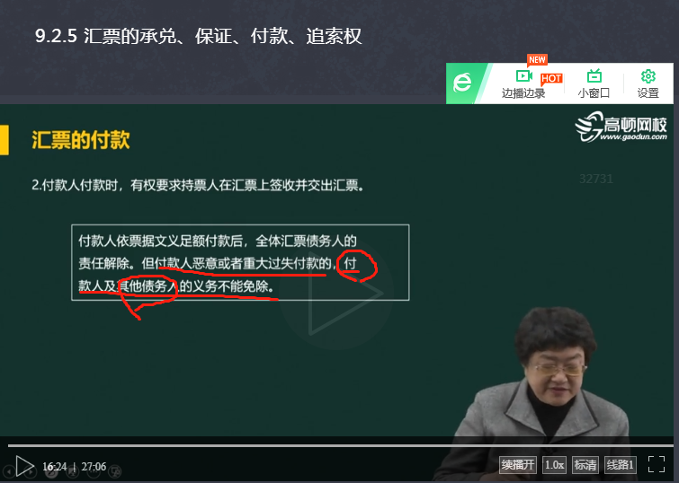老师,这两处有矛盾吗?上面说付款人自行承担责任,下面说付款人和其他债务人义务都不能免除。那么,意思是说上面不单付款人承担责任,其他债务人也承担责任吗?那么为什么说自行承担责任呢?