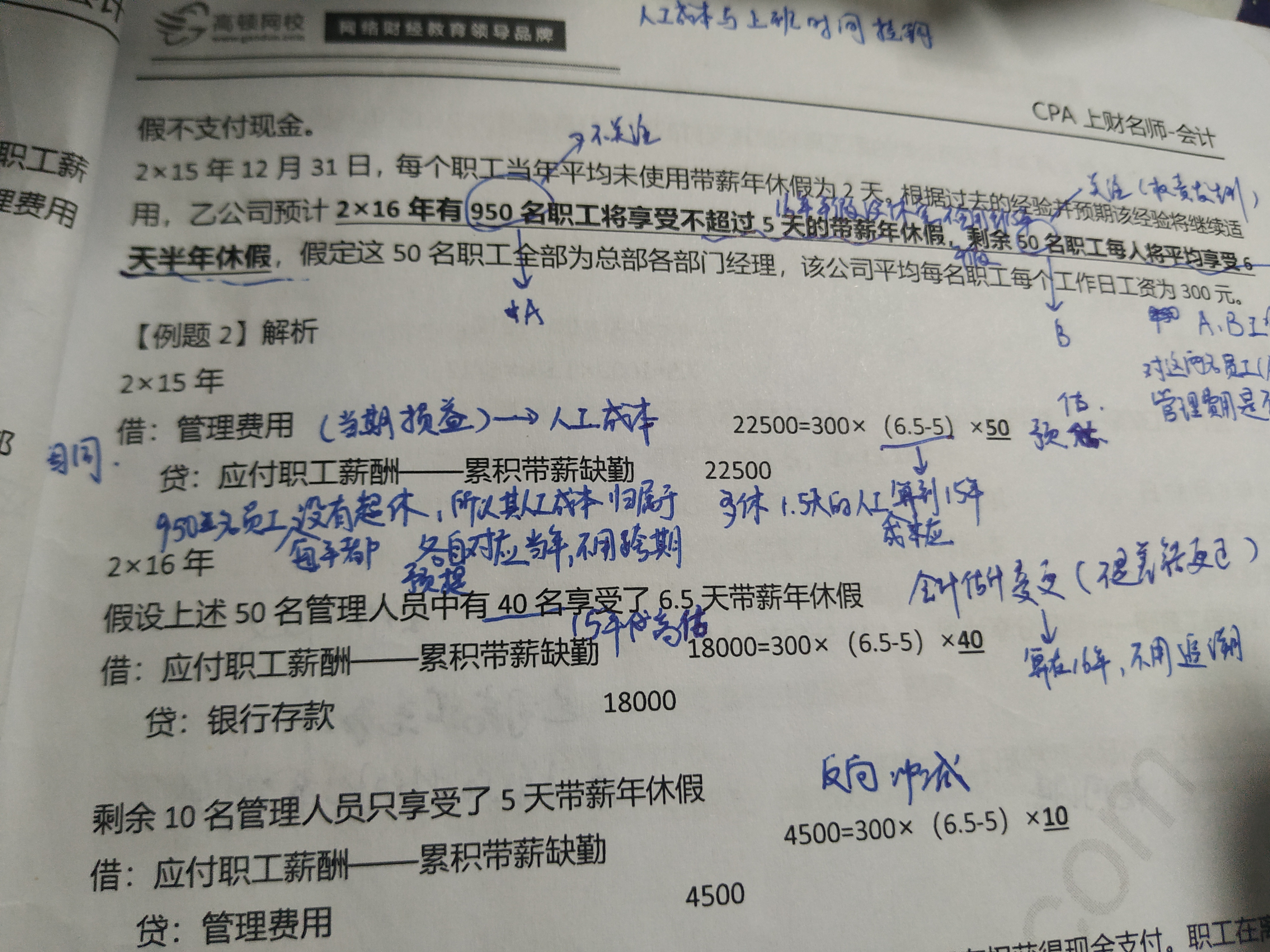 带薪缺勤:这道题主要是涉及未使用的那部分累计带薪缺勤的确认,当期的带薪缺勤没有涉及。