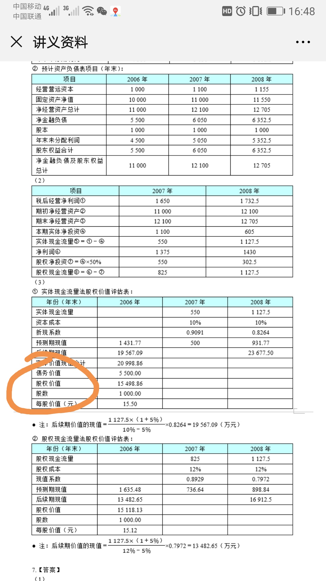 这道题隐含了一个条件:净负债的账面价值可以代表债务价值,所以净负债5500直接来源于2016年年末资产负债表中,然后根据股权价值=实体价值-净债务价值,可以计算出股权价值。