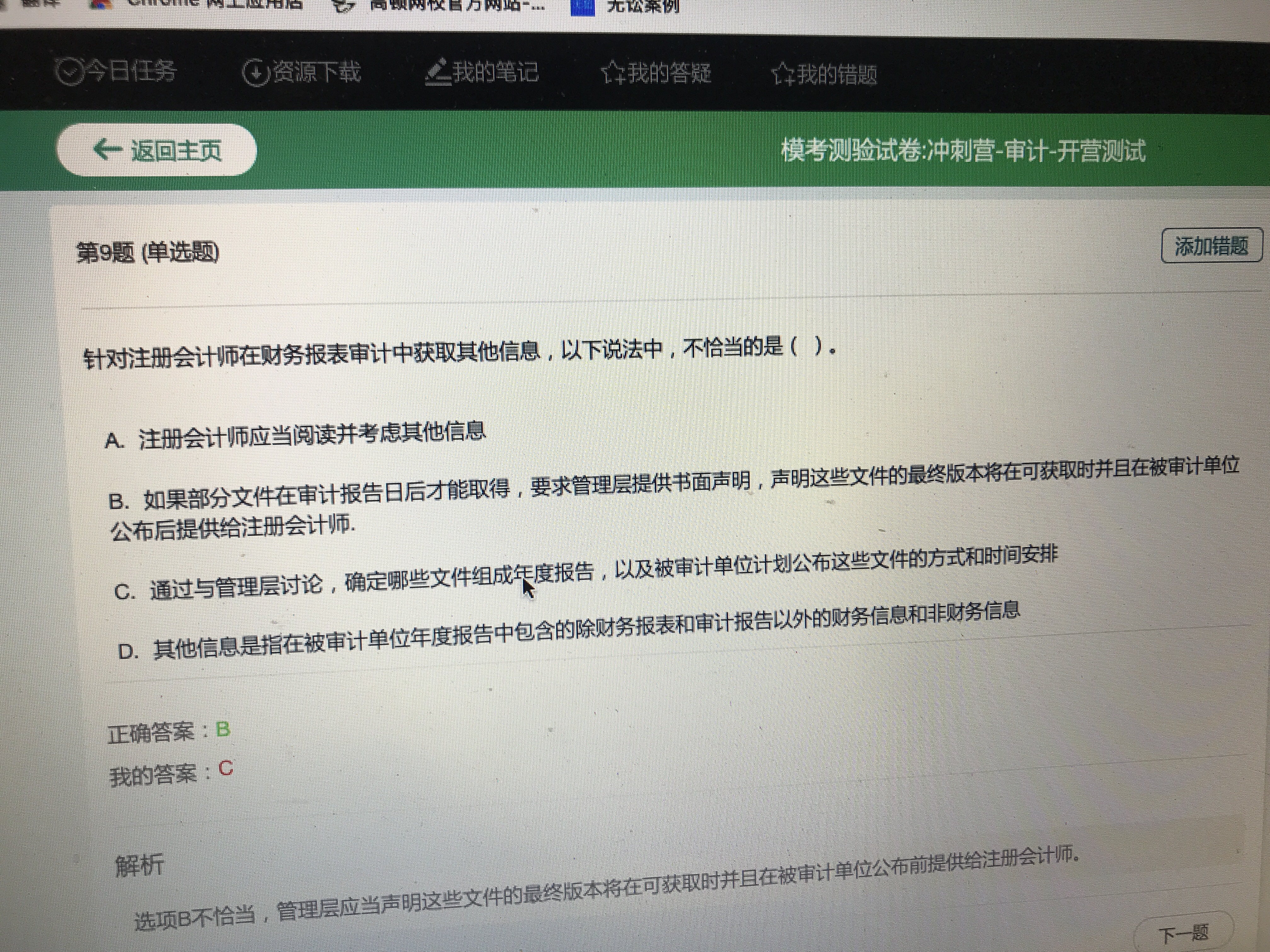 老师你好,C选项的年度报告 不是管理层自己的吗?为什么要CPA和管理层沟通确定呀?