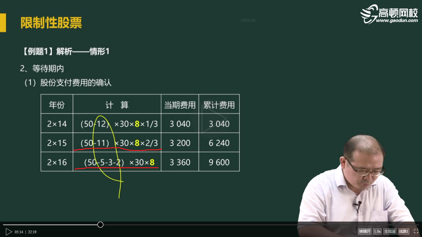 先计算累计费用,然后用下一年的累计费用减去上一年的,例如3200=6240-3040,3360=9600-6240,如果仍有疑问,欢迎继续提出,加油哦~