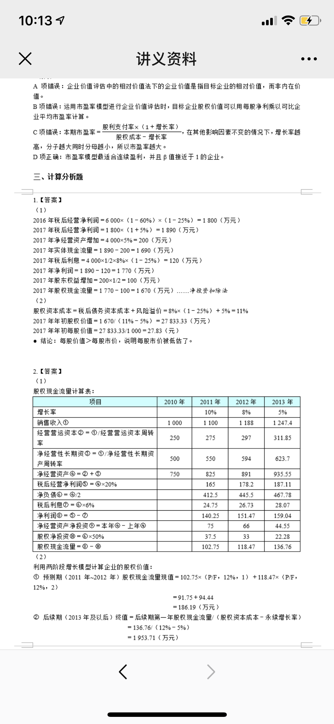 因为达到可持续增长的状态,分母是资本成本-可持续增长率。