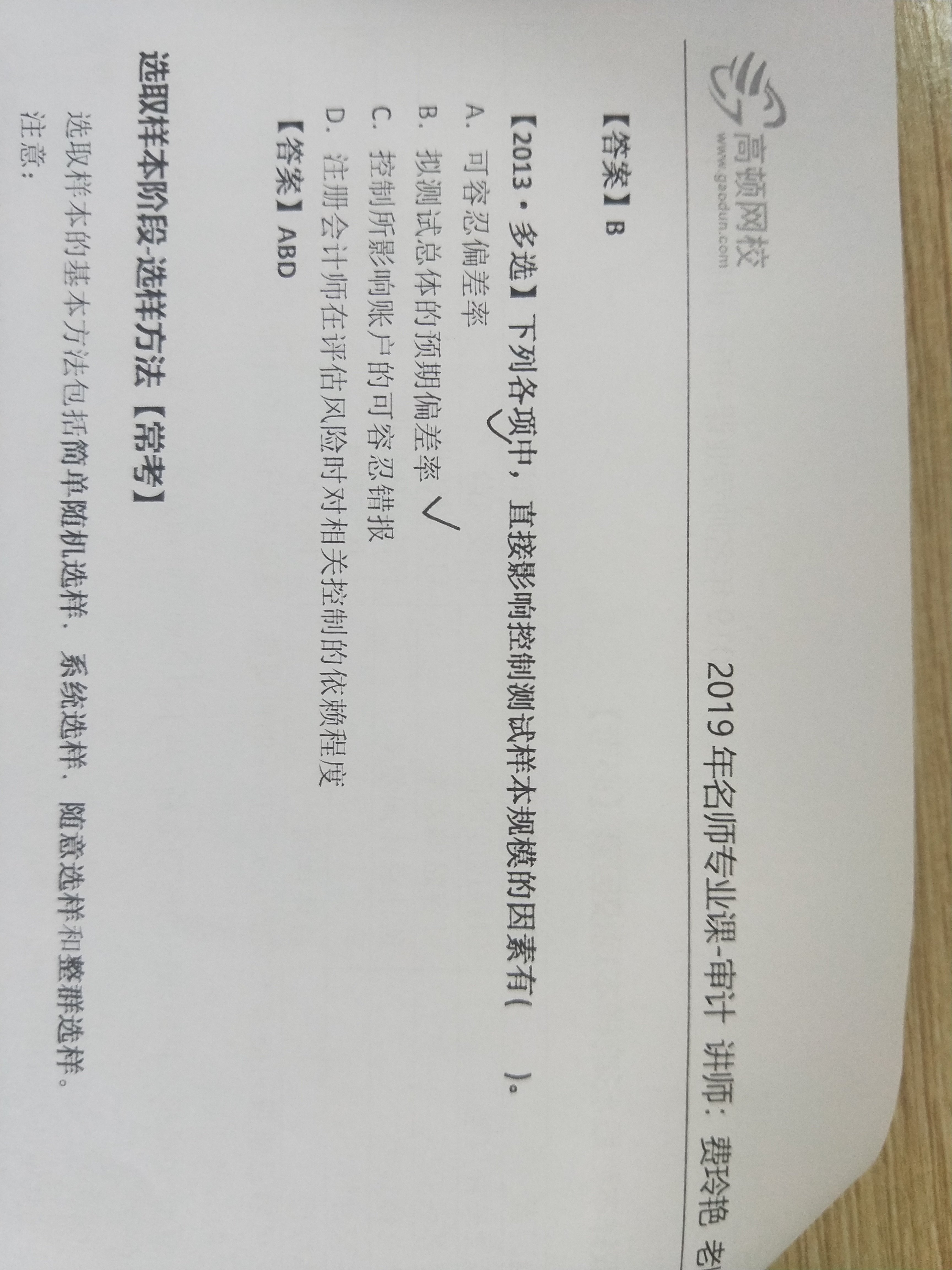 老师好,请教一个答案写正确的选项:“因为审计的固有限制,所以...