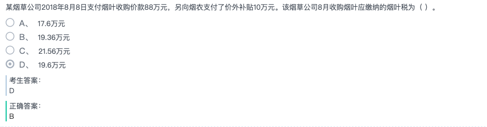 因为烟叶税的计税依据中价外补贴必须要用10%的固定比例,而不是用实际的价外补贴。
