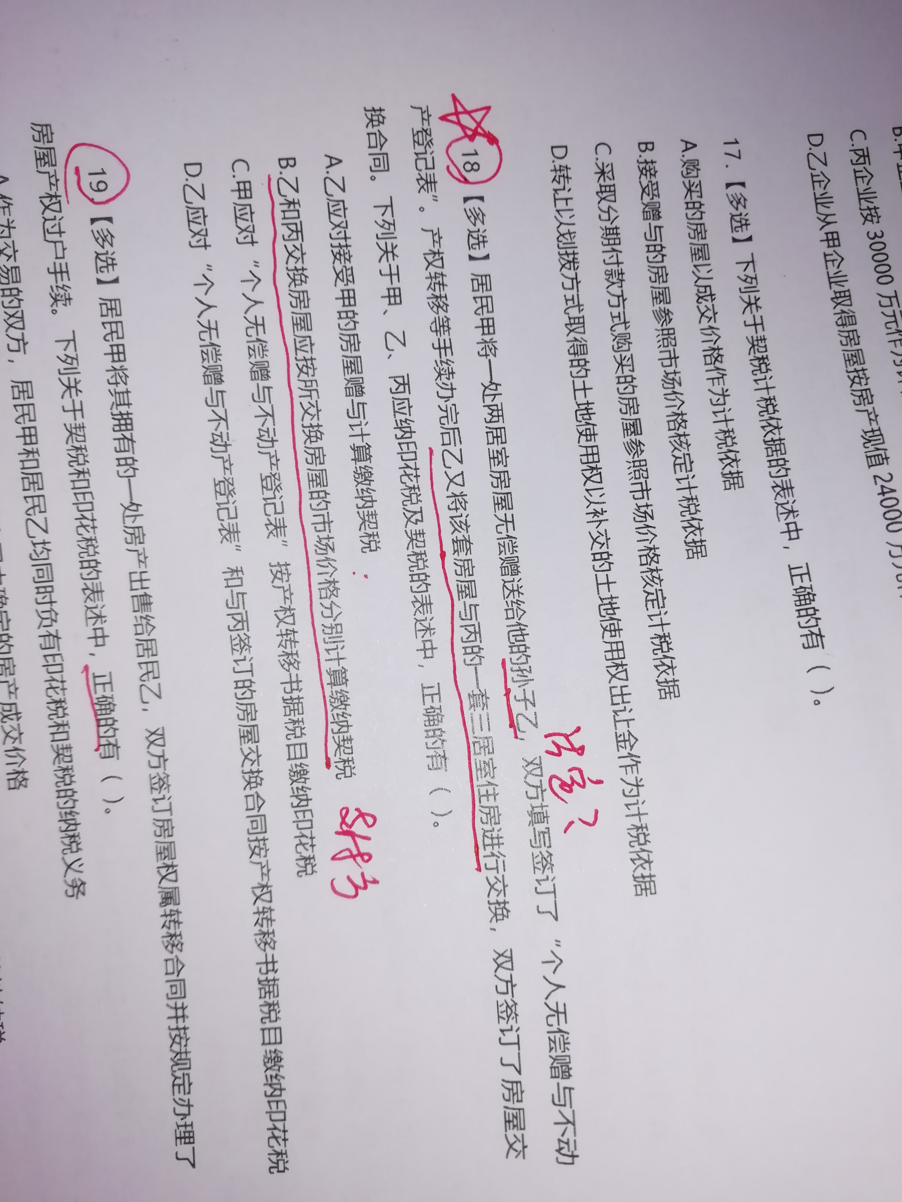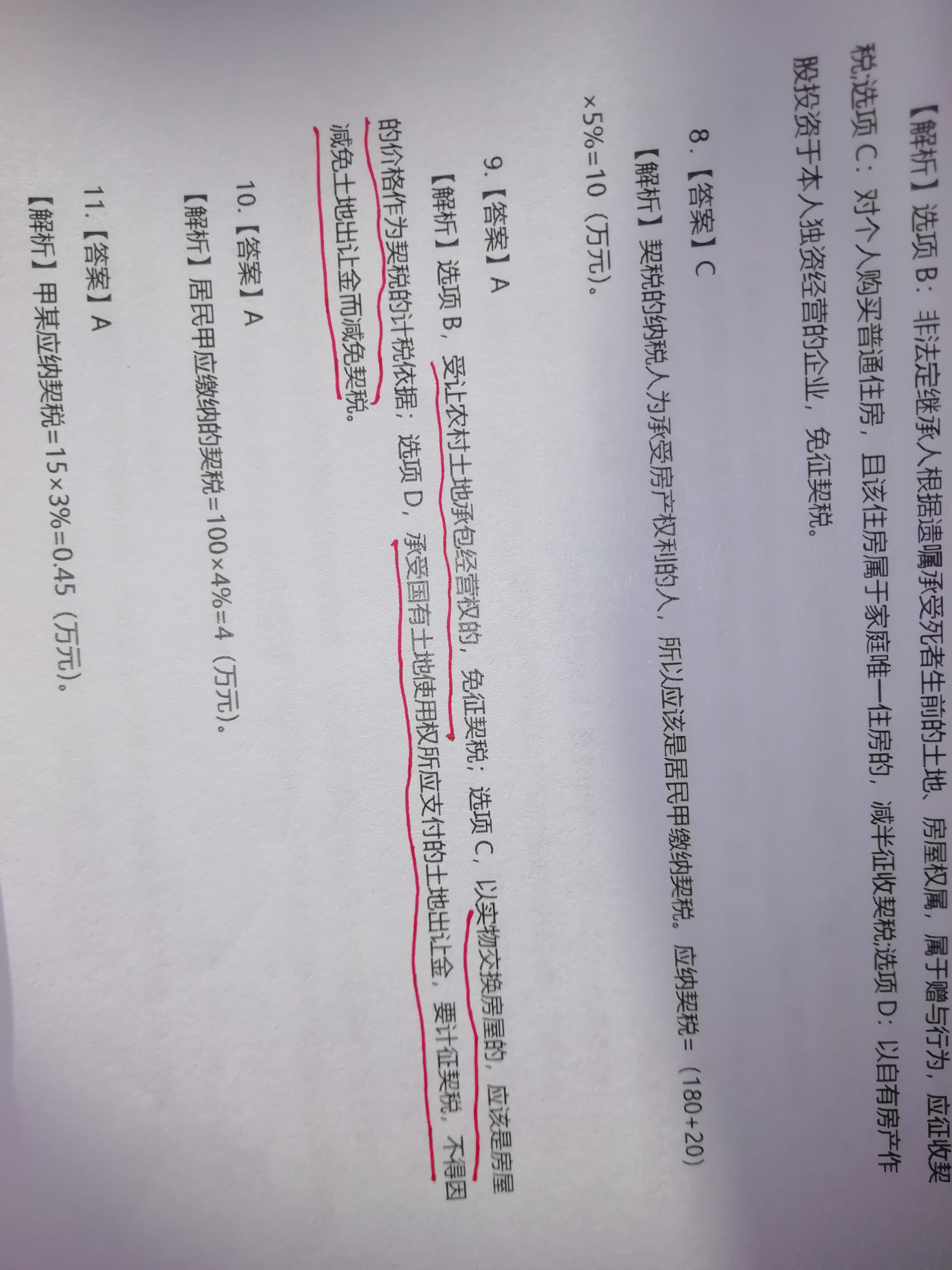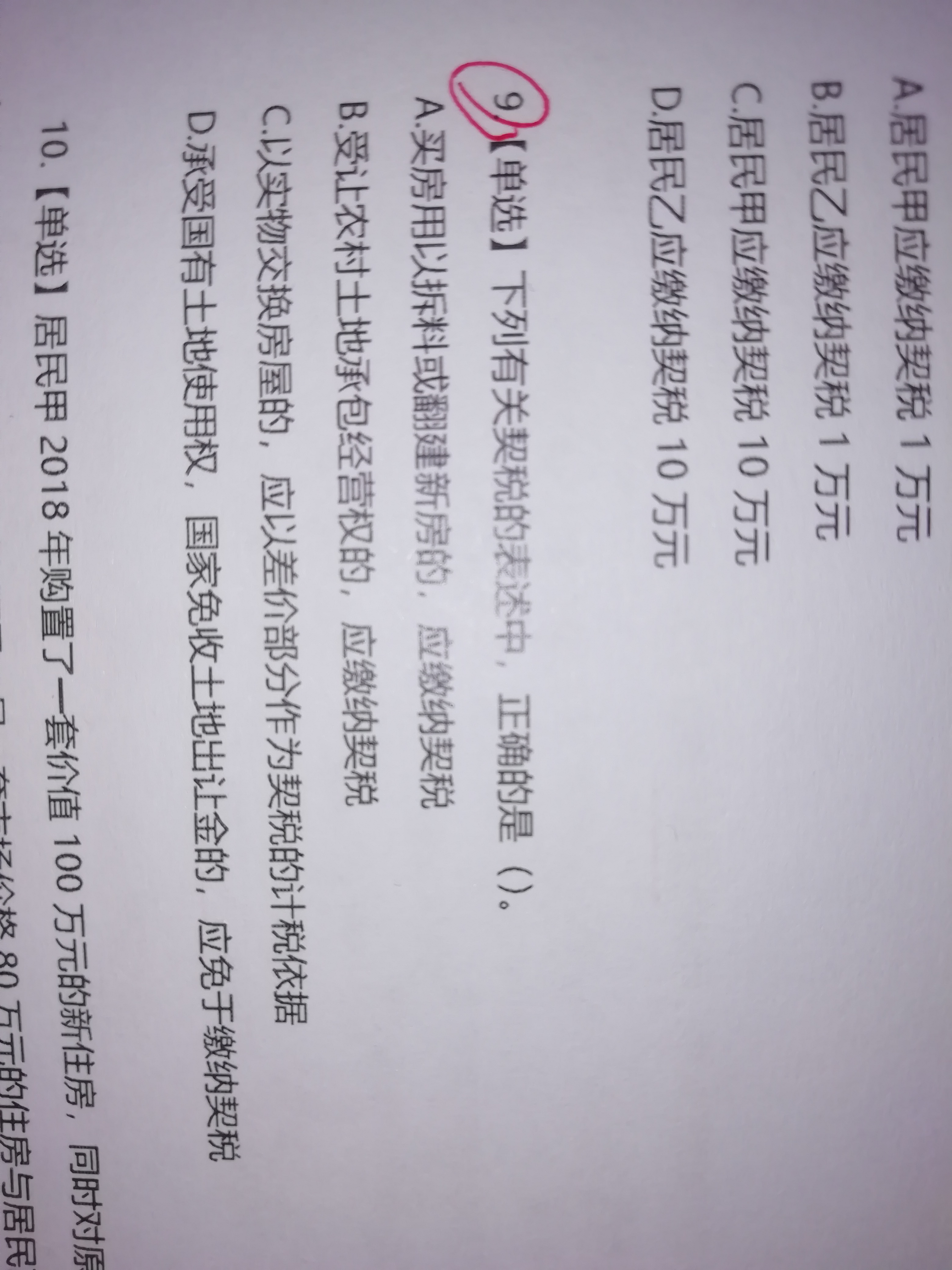 老师,请看第九题的c用实物交换房以房屋的价格为计税依据。十八体b的房屋交换,答案的意思是谁支付谁交契税,不是以房屋真实的价格为计税依据的。