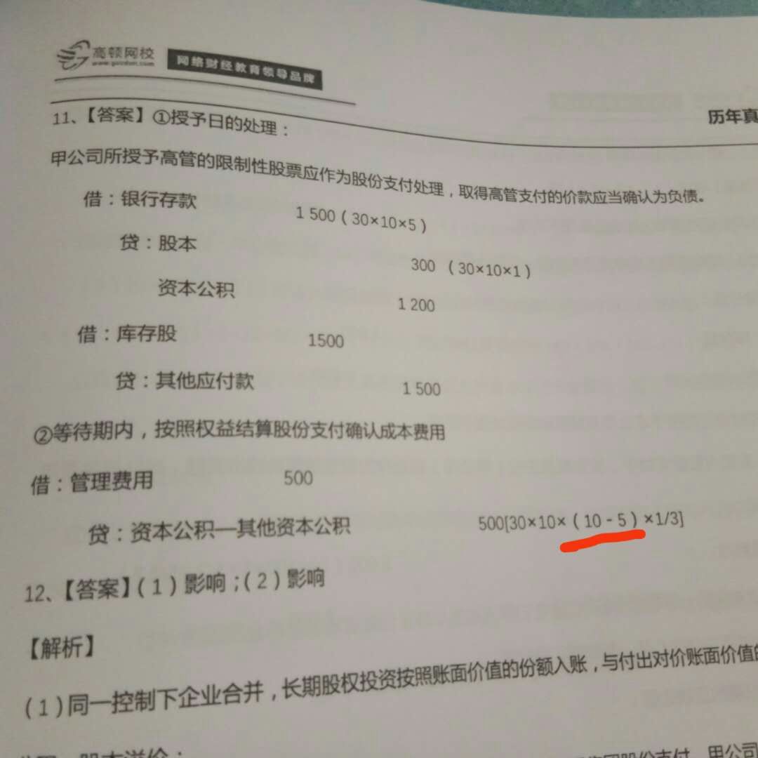 因为这道题目没有直接给我们授予日股票期权的公允价值,所以我们要用股价-行权价来计算,如果仍有疑问,欢迎继续提出,加油哦~