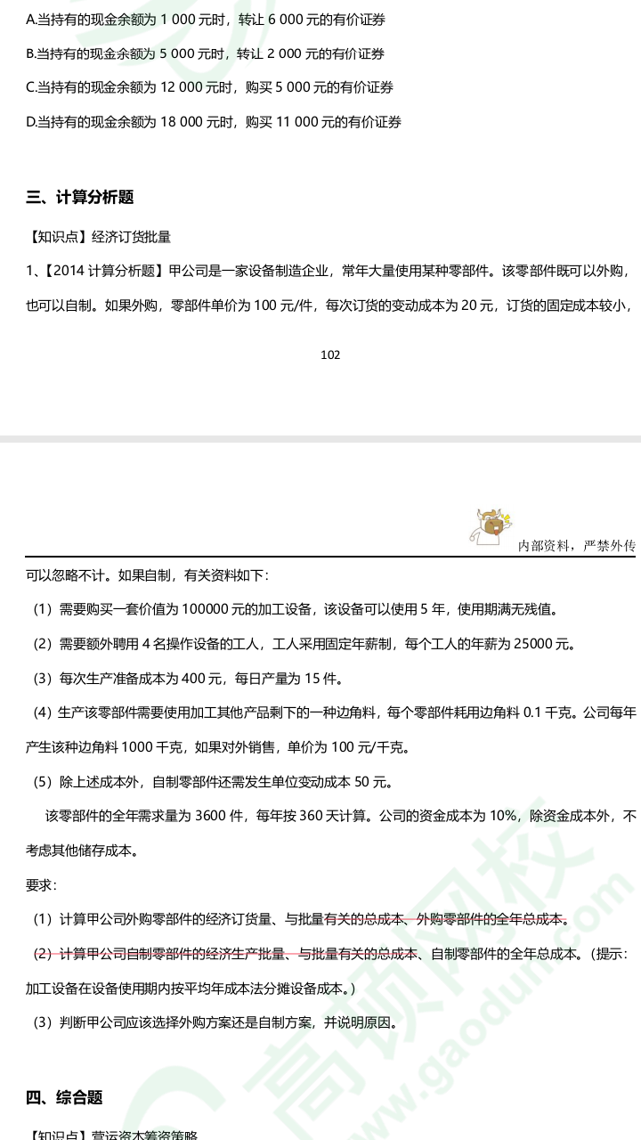 自制情况下单位变动储存成本=(50+100*0.1)*10%=6。括号里就是自制情况下存货占用资金