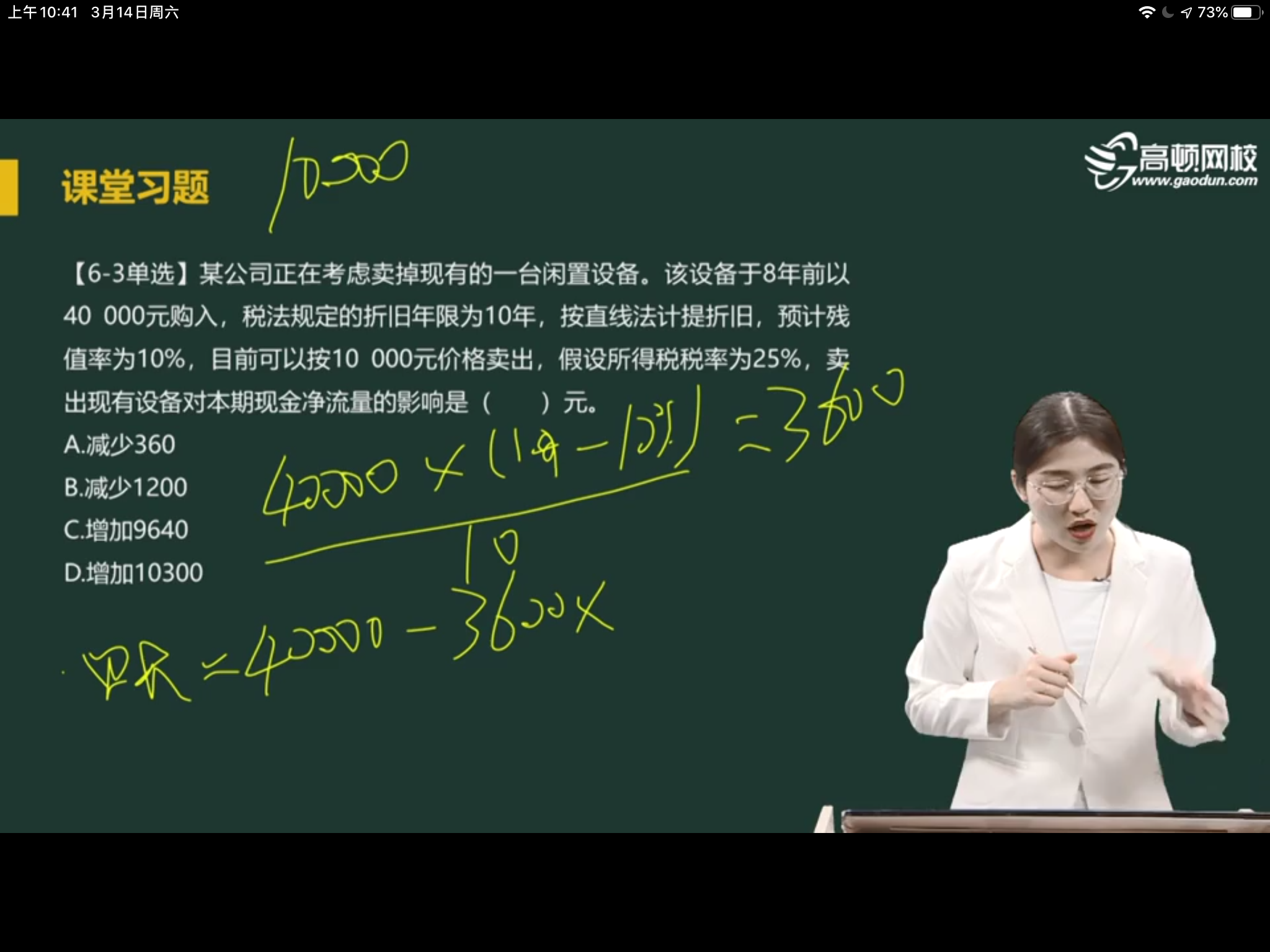 老师6-3问的是卖出对 现金净流量的影响,为什么不考虑净残值呢?是不是卖了才考虑