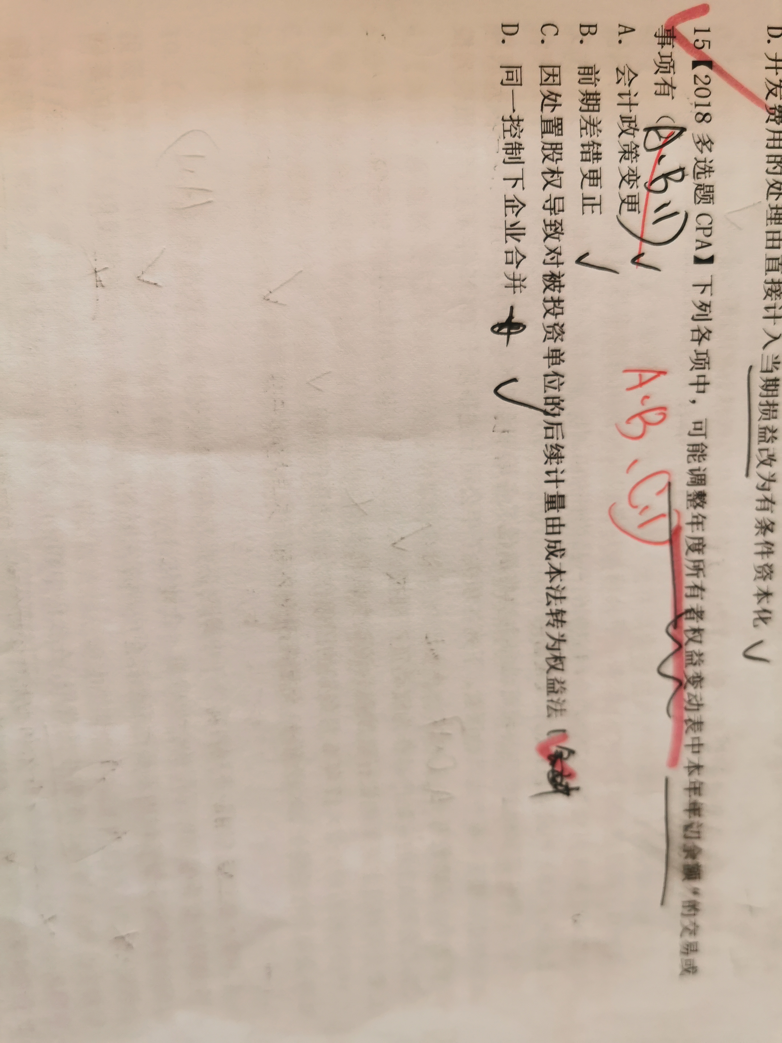 C选项是因为成→权,剩余部分的股权要去追溯,进行调整。