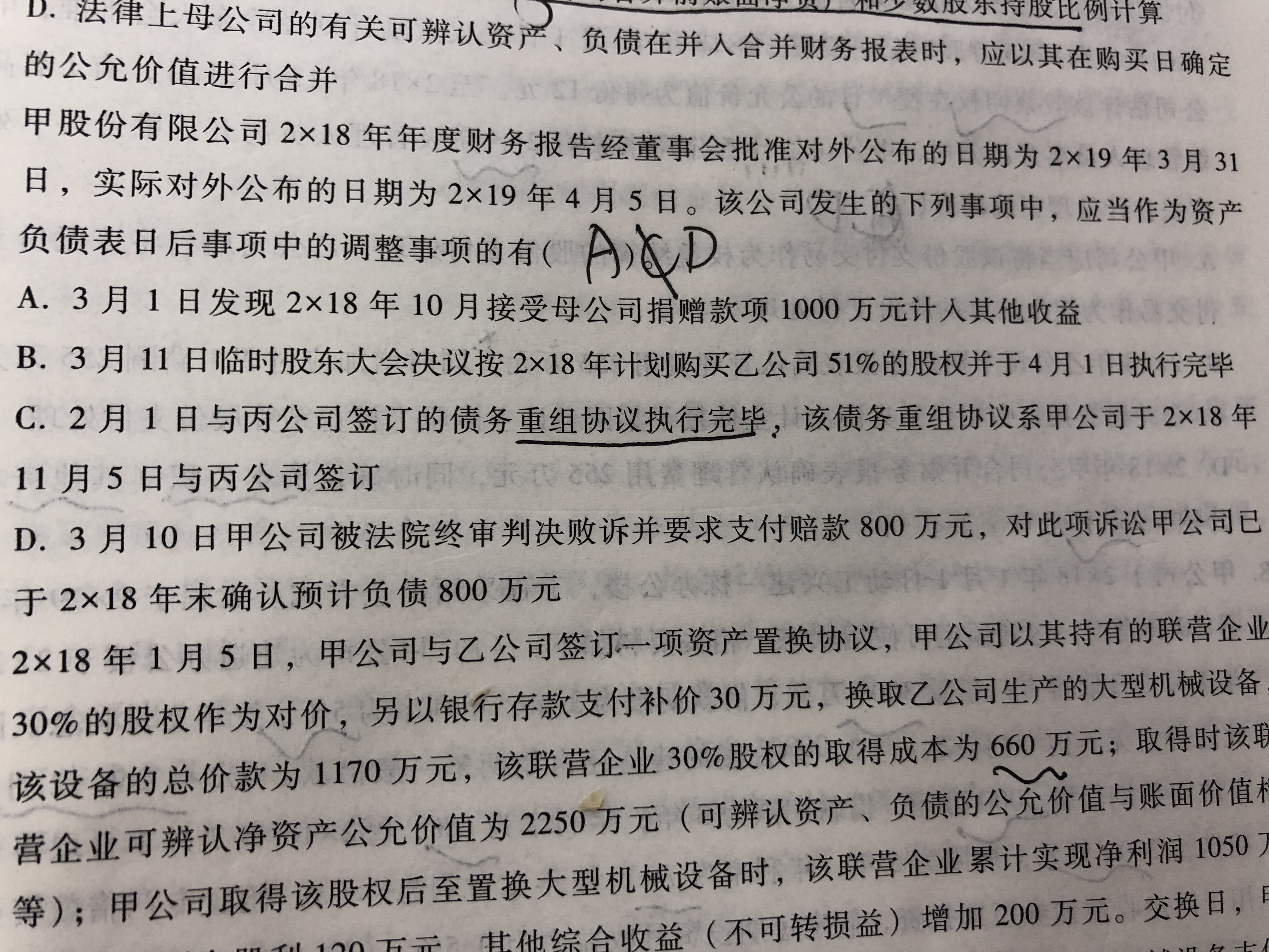 请问老师 上课时说资产负债表日后事项在计算题中并不考虑呀 为...