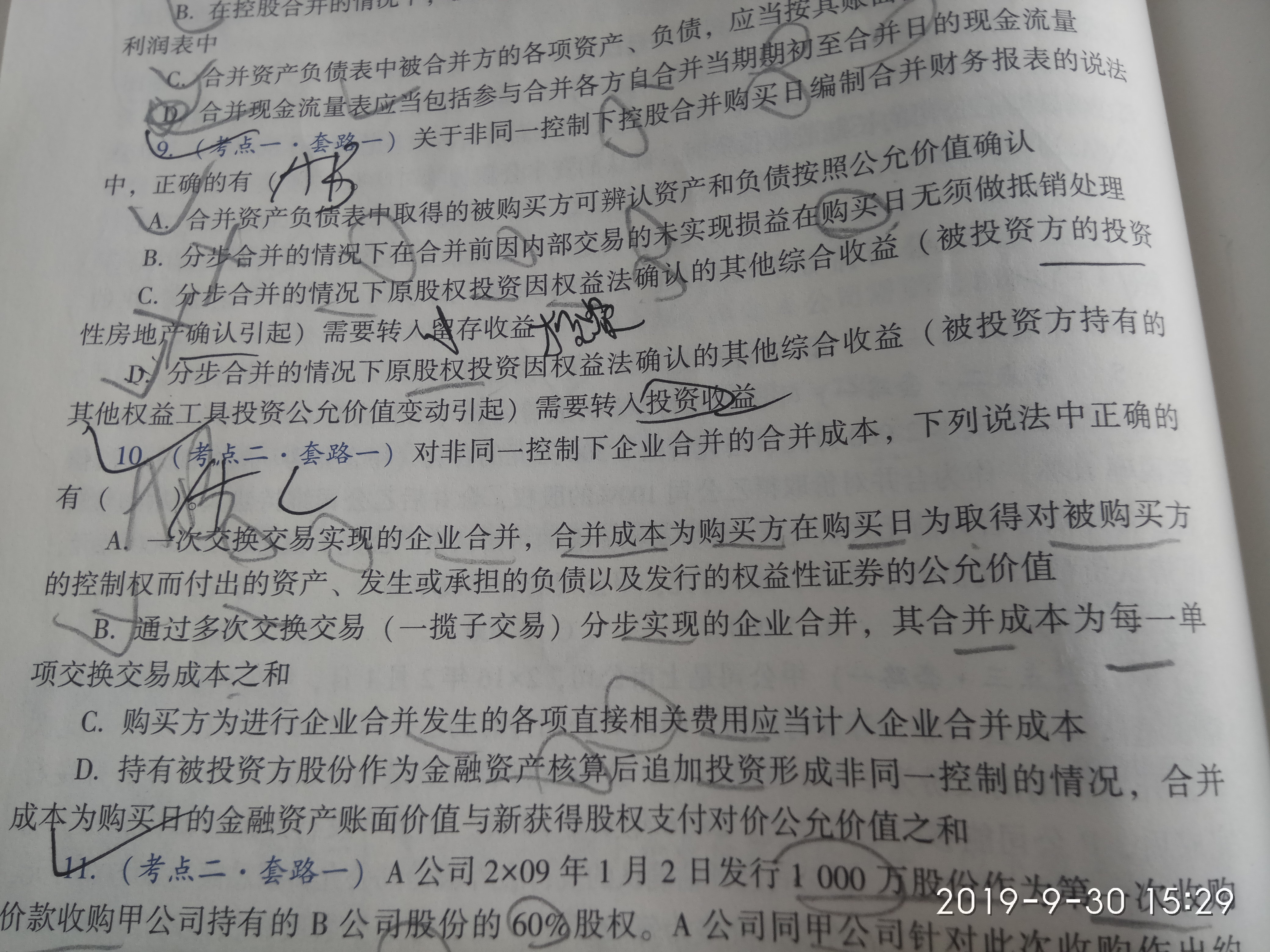 老师您好 !10是多选题 答案是ac 觉的除了a都不√ c企业合并里面有关费用不是没有进成本的吗?老师帮忙解答一下谢谢