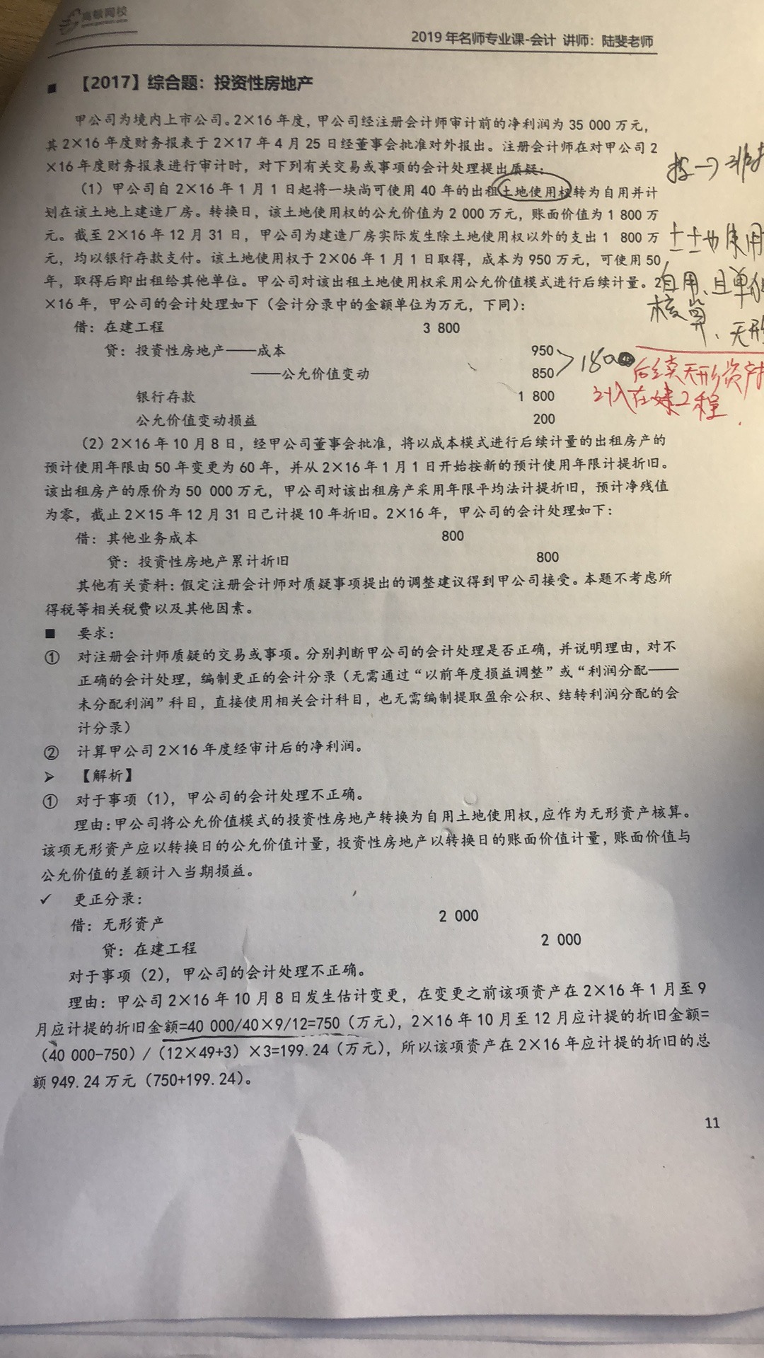 老师,答案没看懂那个40000怎末算出来的,原价50000截至15年12.31以折旧10年,2015年12.31账面价不应该是50000-50000/50=49000嘛,但是答案好像是40000,