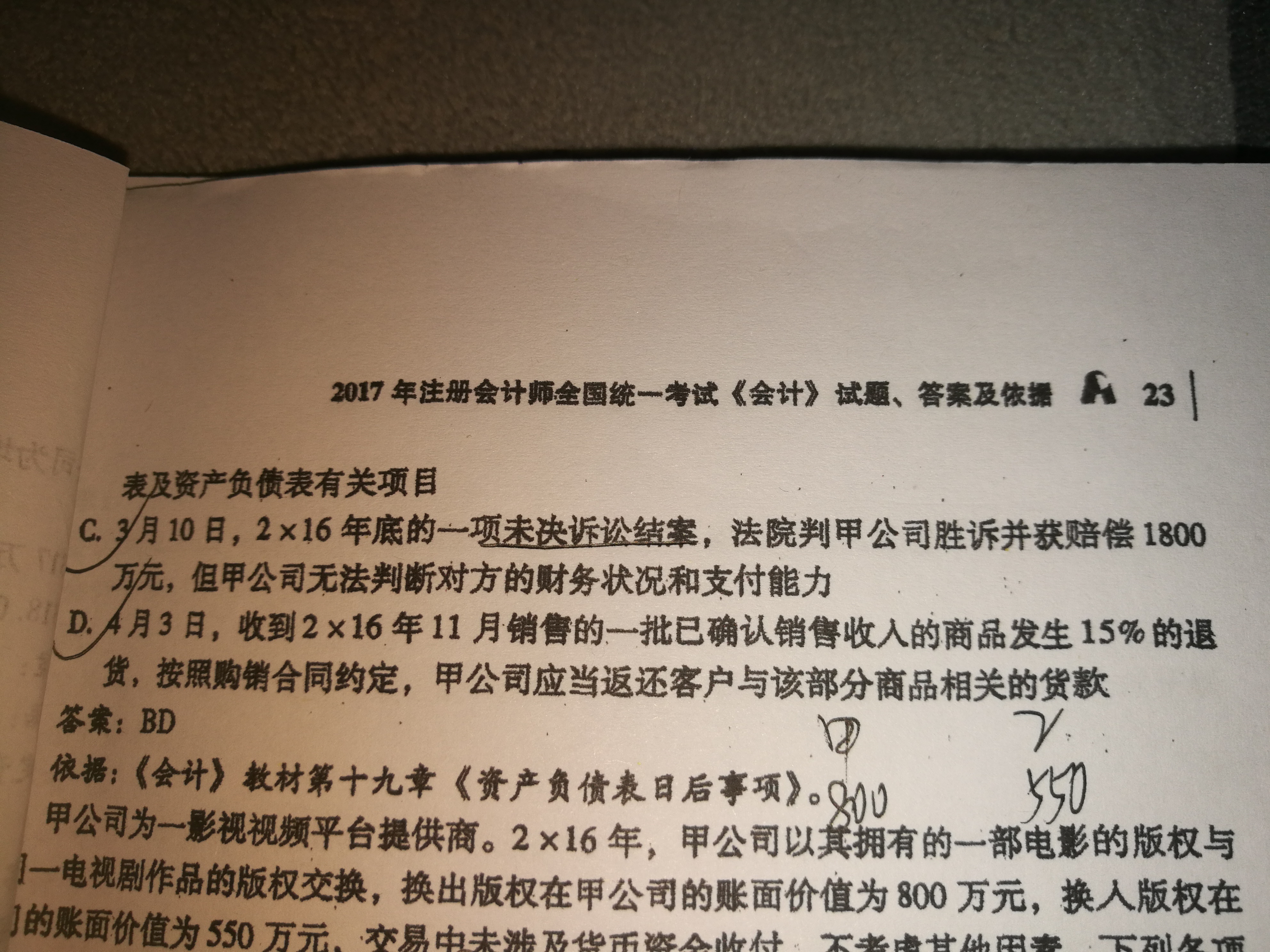 老师,这里的C选项不是调整事项。 是不是把它改为在2016年已经确认了预计负债多少多少,然后2017年3月10日法院判胜诉就成为调整事项了。