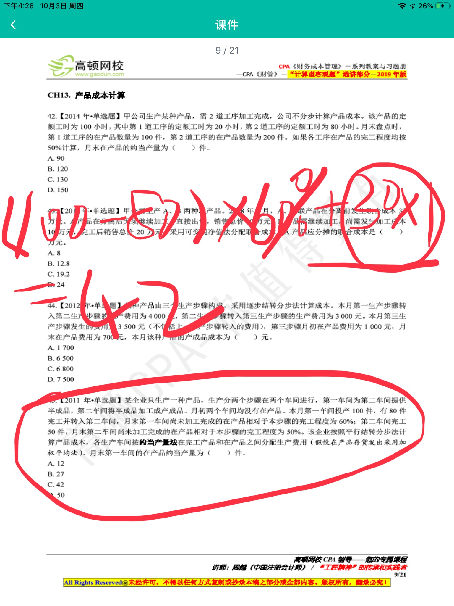 老师 ,第一步骤的完工产品是200件,答案里怎么是按120件...
