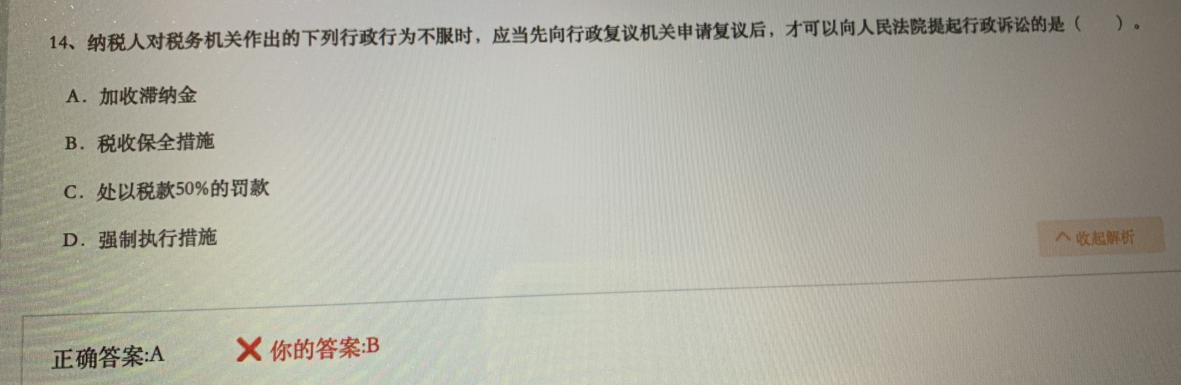 C不是具体征税行为,具体征税行为才必须复议前置。