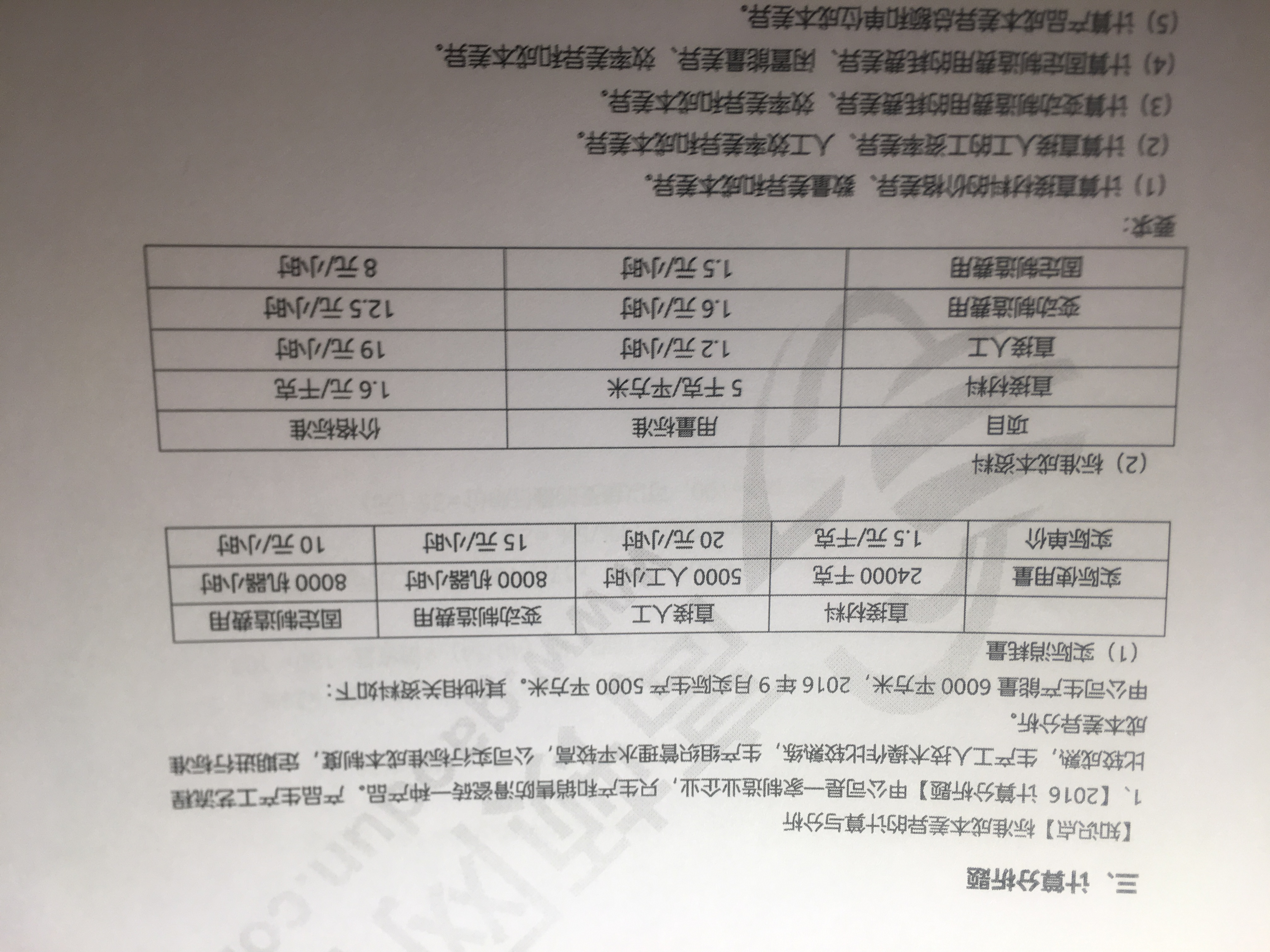 表格中的直接人工/变动制造费用和固定制造费用的用量标准的单位是错误的,应该是平方米/小时。