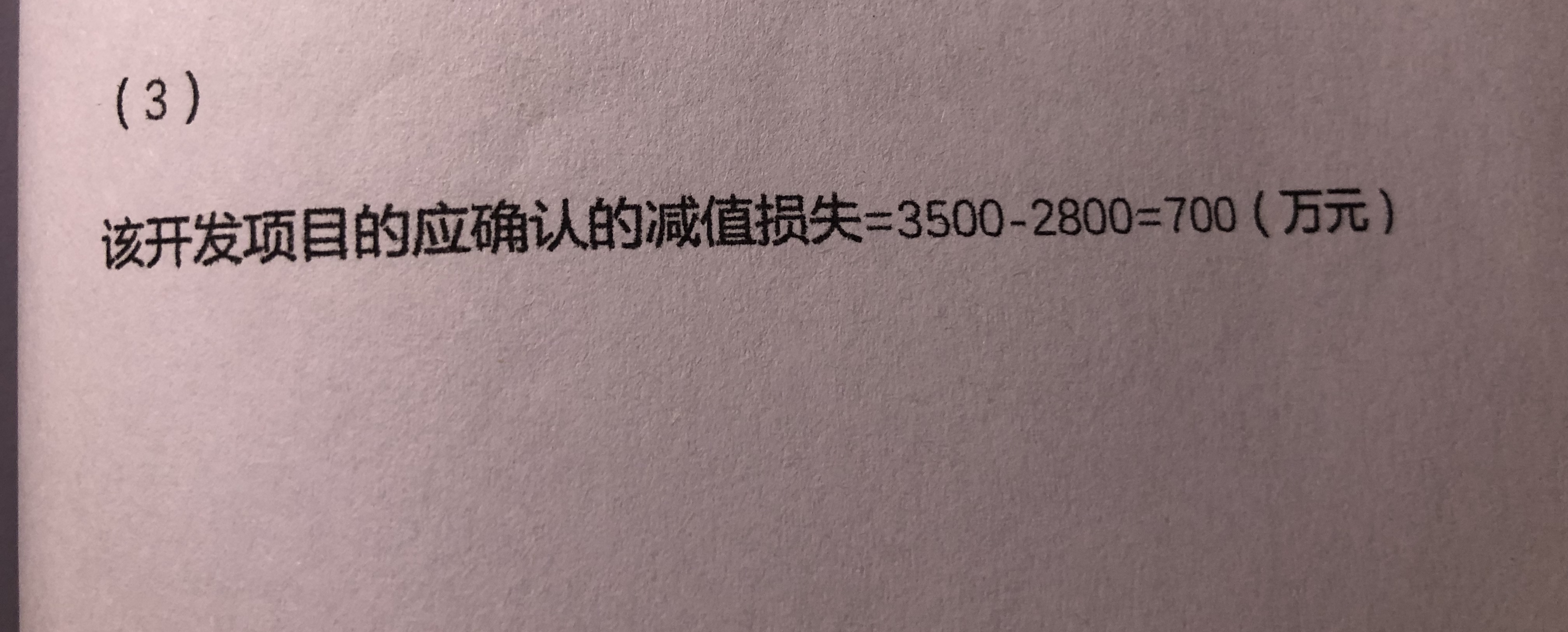得用扣除继续开发的2800和2500比较,按照溯高,确认可收回金额,然后可收回金额和账面价值比较得出减值。