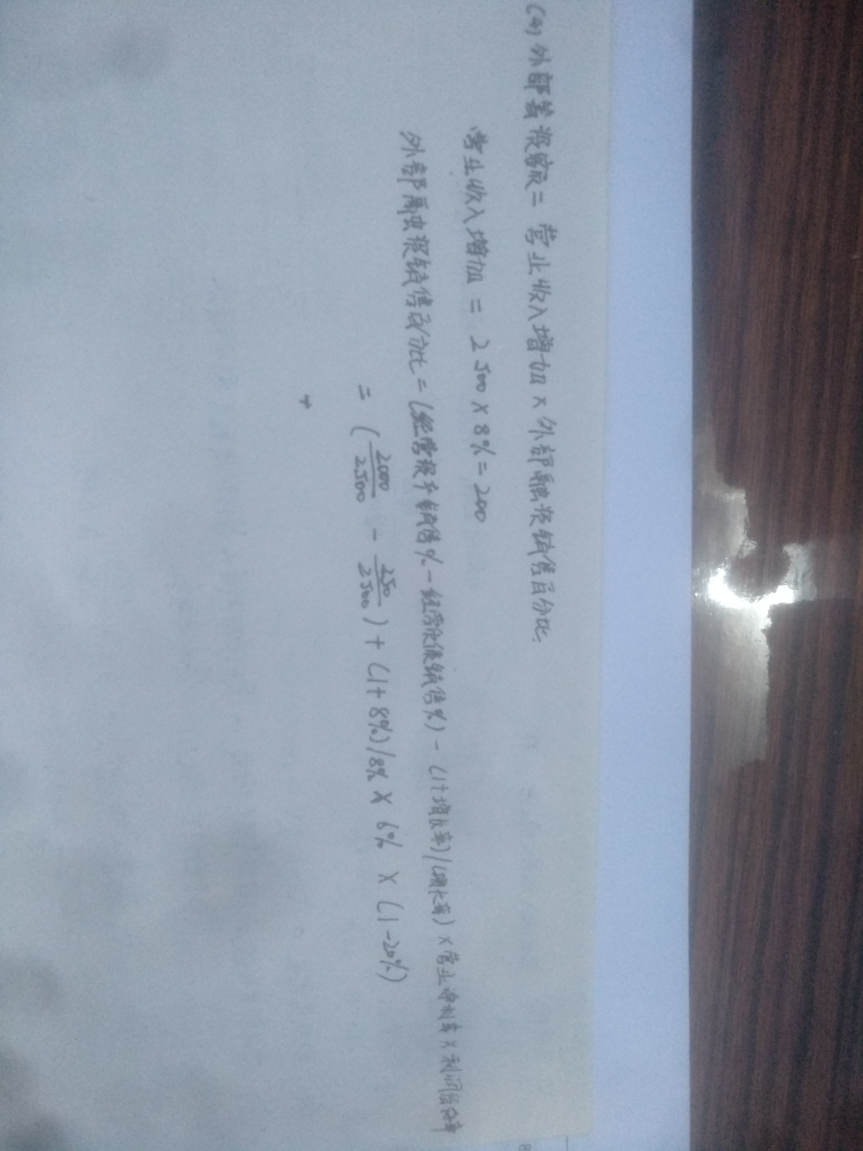 老师您好,请问这个题目的(4)中,计算外部融资额时,这个计算方法哪里出问题了呢?算出的外部融资百分比为负数。