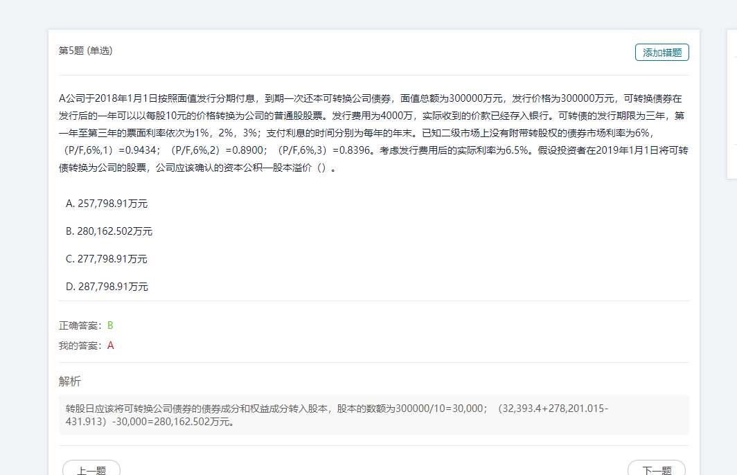 转股日应该将可转换公司债券的债券成分和权益成分转入股本,股本的数额为300000/10=30,000;(32,393.4+278,201.015-431.913)-30,000=280,162.502万元。