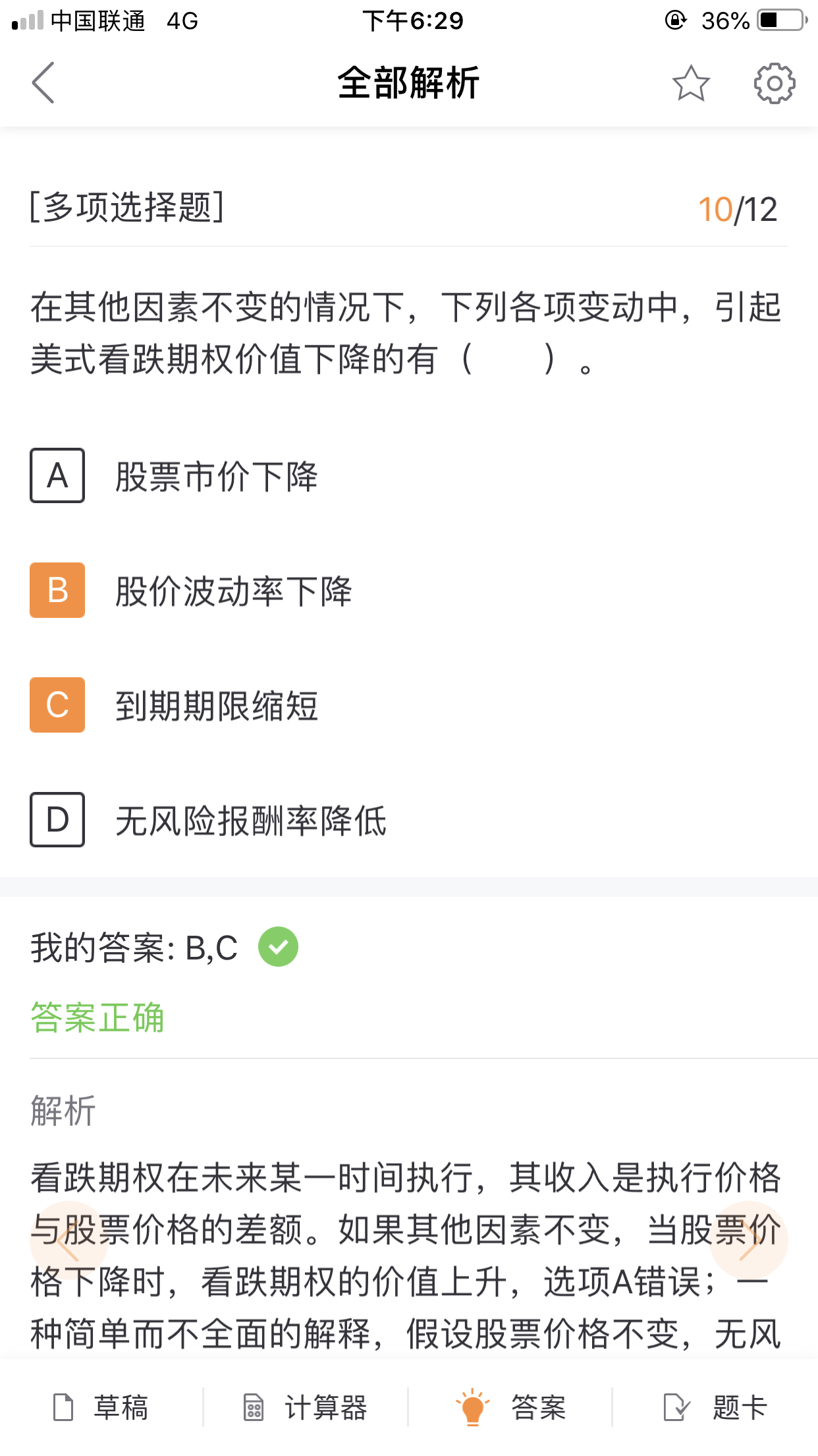 股价的波动率,与期权价值成正比,是因为股价波动率越大,风险越...