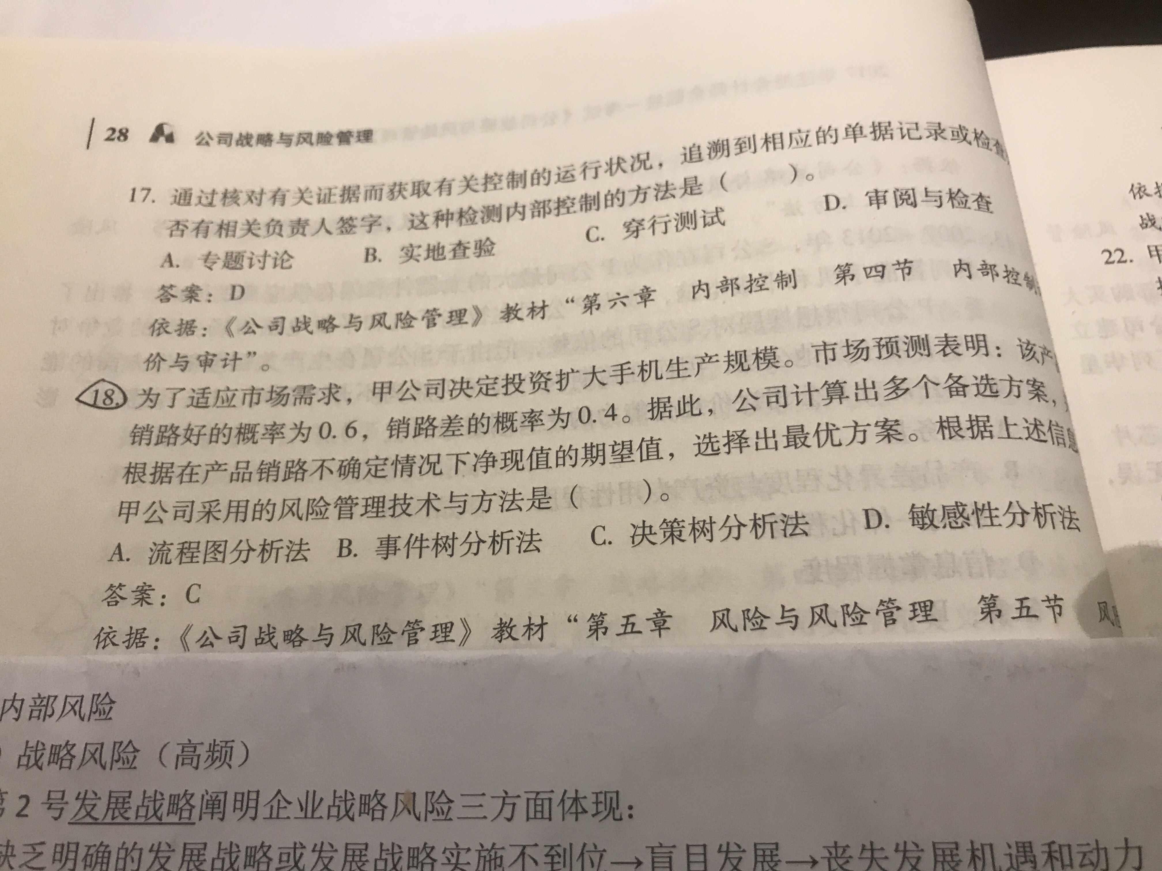 18题:本题对各个情况进行了分析之后做出了决策,所以是决策树法;情景树分析是做出分析,但是没有决策这一步。
