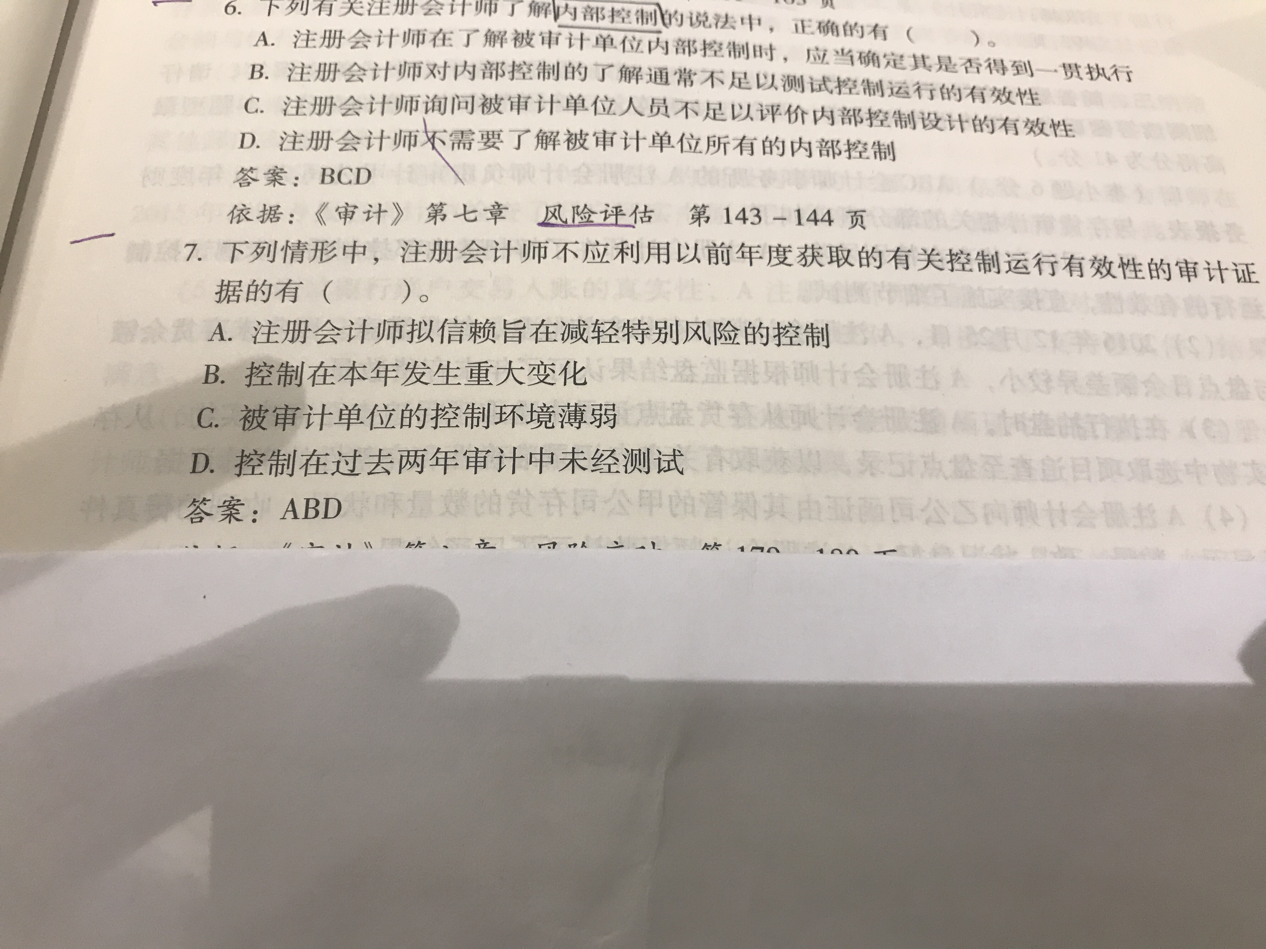 控制环境薄弱时,cpa可以有两种选择,一是本年测,二是缩短测试间隔(也就是一般3年测一次,现在缩短为2年测一次,所以如果去年测过了,今年可以不测,可以利用以前获取的审计证据),所以c不选;