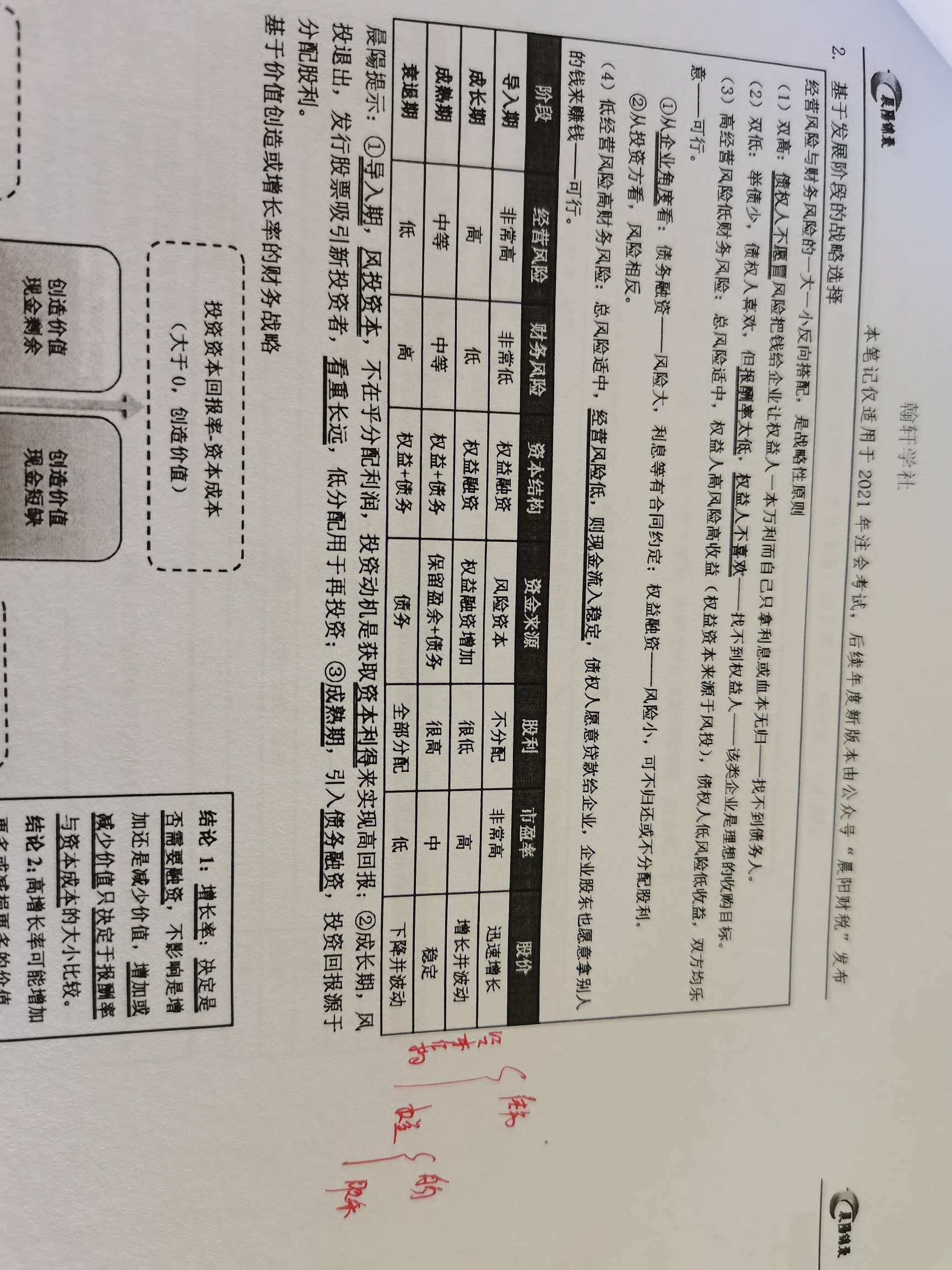 老师,导入期到衰退期的资本结构和资金来源变化我不理解,从财管角度,资本结构来源债权和股权,其中股权又划分为自有资金(盈余)和对外股权融资方式,那么从总结的来说,导入期大部分是权益融资这里指的是自有资金的投入吧,比如公司股东注册资本投入,当企业不断发展时进去成熟期会有债务融资,这里的权益部分还包括了盈余,我有两个问题,第一,生命周期理论是针对每个企业都有这四个阶段的还是这里的四阶段是针对一个行业发展的四个阶段,这里的总结并不是针对一个企业不同发展阶段而是不同产业阶段的?另外导入期的资金来源是风险资本,这个风险资本是指什么我不懂?