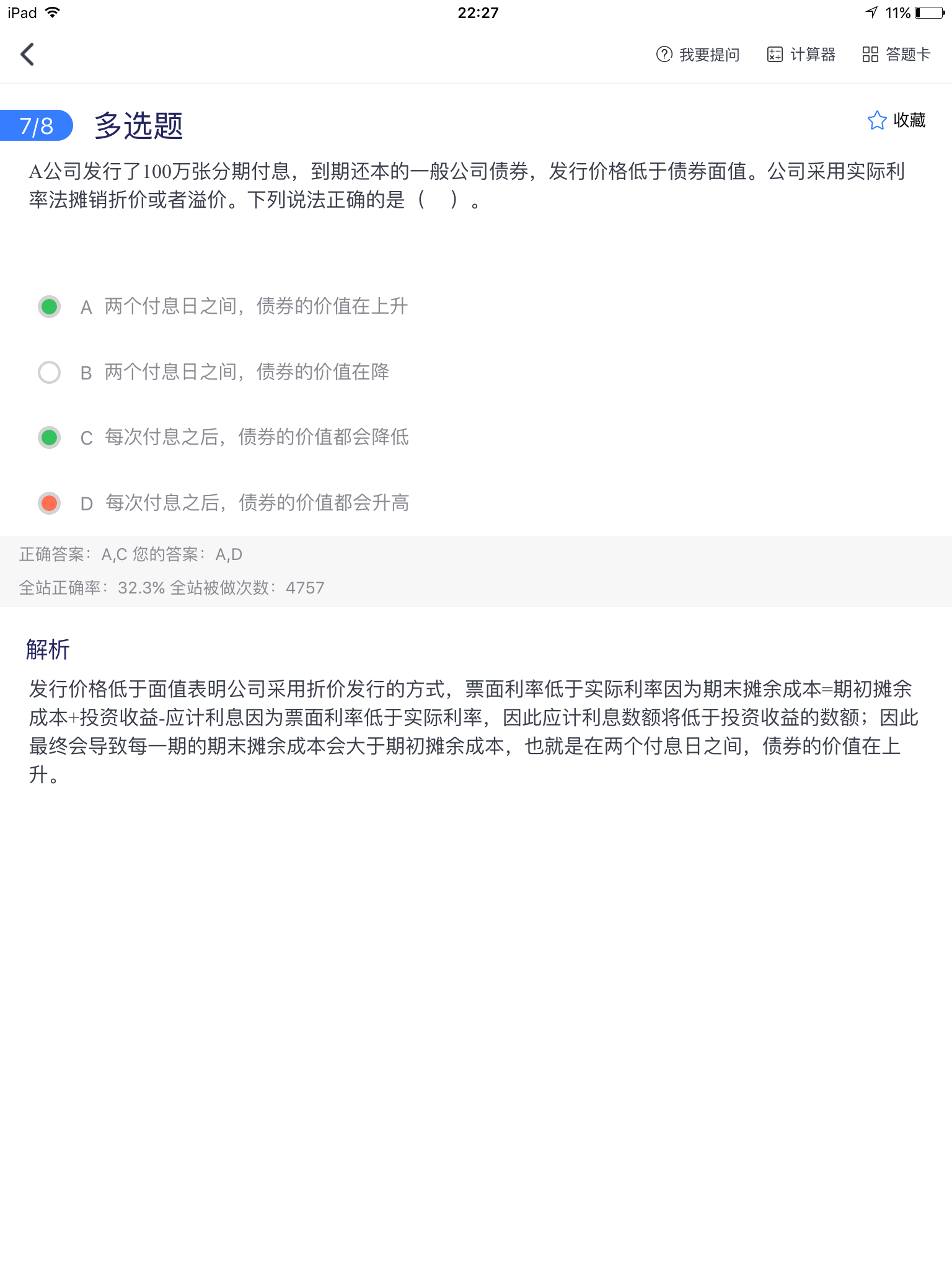发行债券,不管是溢价还是折价发行,都有利益调整。最终感觉调成...