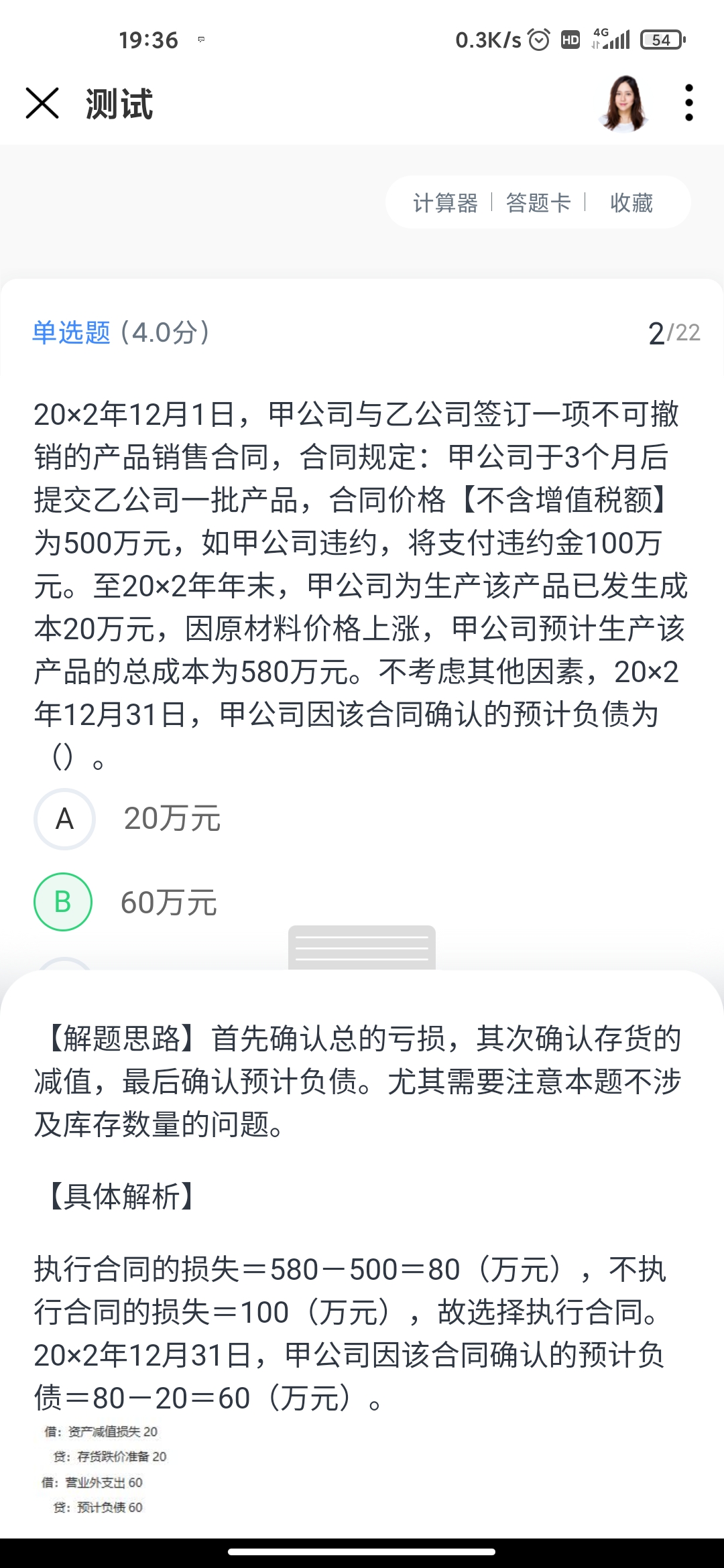 教师回复: 勤奋努力爱学习的同学,你好~针对你说的这个问题,1、在租赁期开始日,确认使用权资产和租赁负债,会计分录是:借:使用权资产 2,600,000租赁负债-未确认融资费用 550,000=3,150,000-2,600,000贷:租赁负债-租赁付款额 3,150,000=每年的租赁付款额450,000*租赁期72、在后续计量时,使用权资产要计提折旧(类似于固定资产的管理),会计分录是:借:管理费用 371,428.57贷:使用权资产累计折旧 371,428.57=2,600,000/7(租赁期为7年,按照7年计提折旧)3、在后续计量时,要确认租赁负债的利息,会计分录是:借:财务费用 131,040贷:租赁负债-未确认融资费用 131,040=期初账面价值2,600,000*实际利率5.04%4、按照当年销售额超过1,000,000元的,当年应再支付按销售额的2%计算的租金,这个属于可变租赁付款额;在实际发生时,直接计入当期损益,会计分录是:借:销售费用 30,000贷:应付账款 30,000=销售额1,500,000*比例2%综合看来,对利润的影响金额合计是:管理费用( -371,428.57)+财务费用( -131,040)+销售费用 (-30,000)=-532,468.57如还有不清楚的地方,欢迎随时提问,Andy老师会尽快解答,爱学习的你是最棒的,加油~