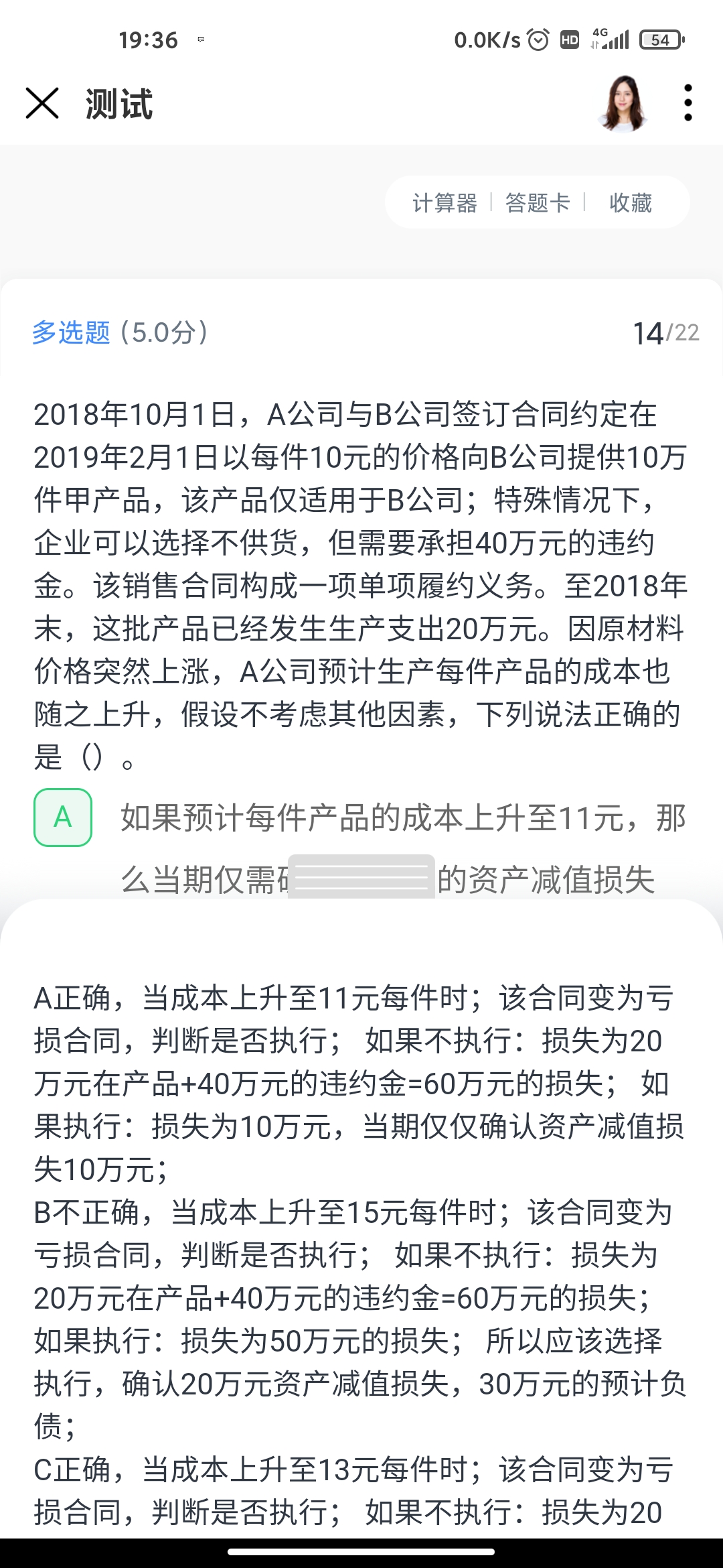 区别在于,第二题,说明了该产品,仅适用B公司,所以不执行的话,已发生的成本也减值到0,所以计算亏损时考虑已发生成本。而第一题,不执行,已发生成本,不会直接做减值测试,因为并不是特定产品。