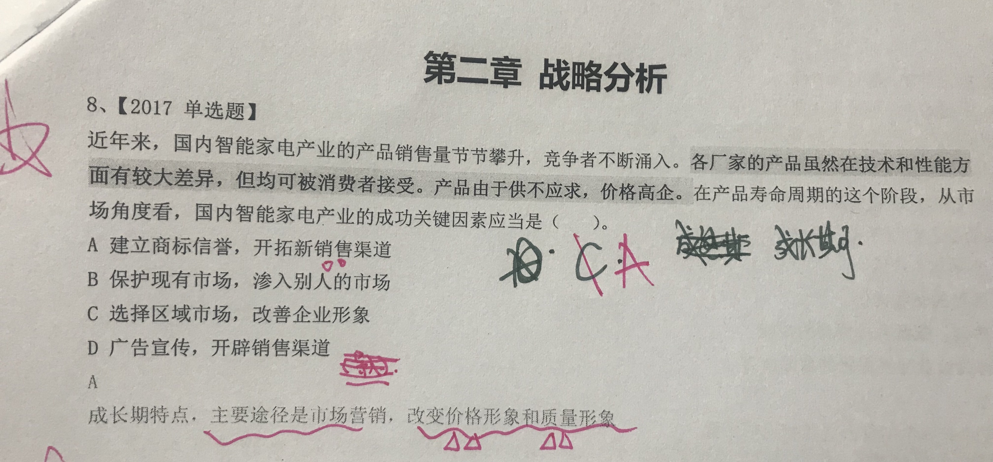 本题A和D很相近,区别在于,选项A是“开拓”销售渠道,“开拓”意味着原来有,现在新增一条销售渠道,针对于成长期