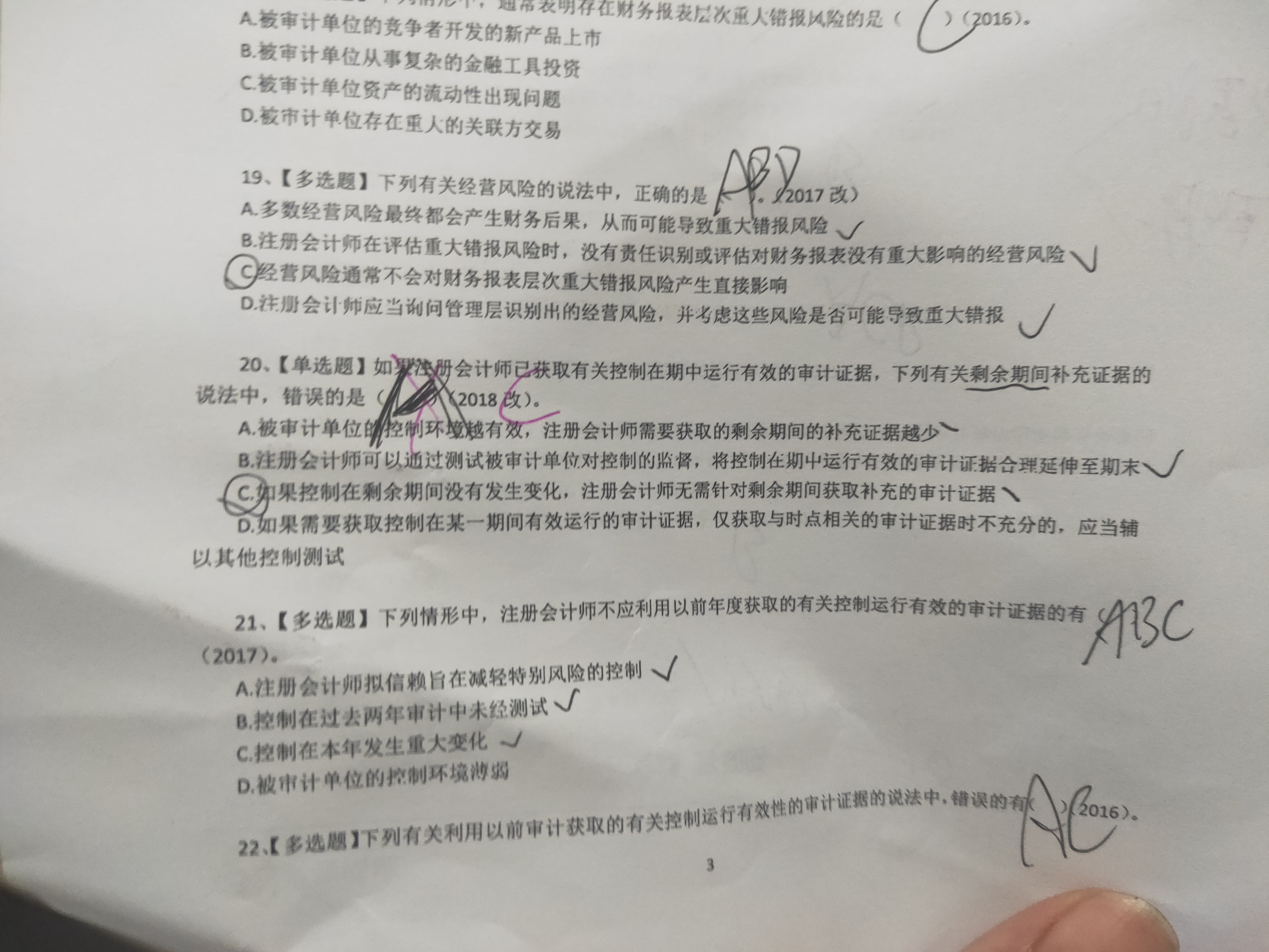 老师您好,20题a应该是越多吧,内控环境好,从内控中获取审计证据就可以越多啊,从而减少实质性程序,这也是考虑了成本效益原则。而且我记得我做过这个a呢 当时是越多的啊,我还特意记忆了下。当然c也是错的,就看a就好。