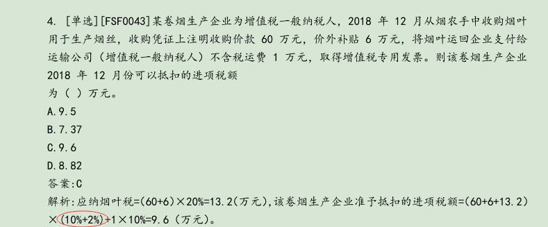 因为你生产销售的是卷烟,卷烟是高税率货物(16%),所以扣除率是12%