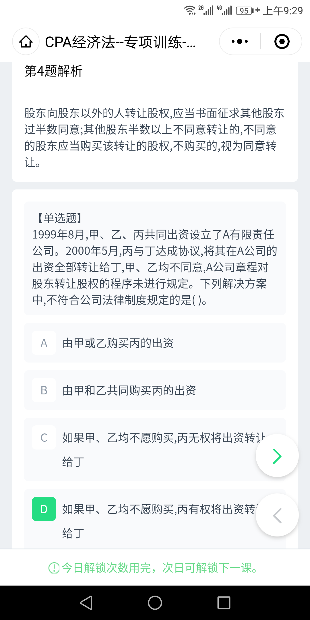 C选项不同意,又不购买的,视为同意,丙是有权转让给丁的。所以错误。