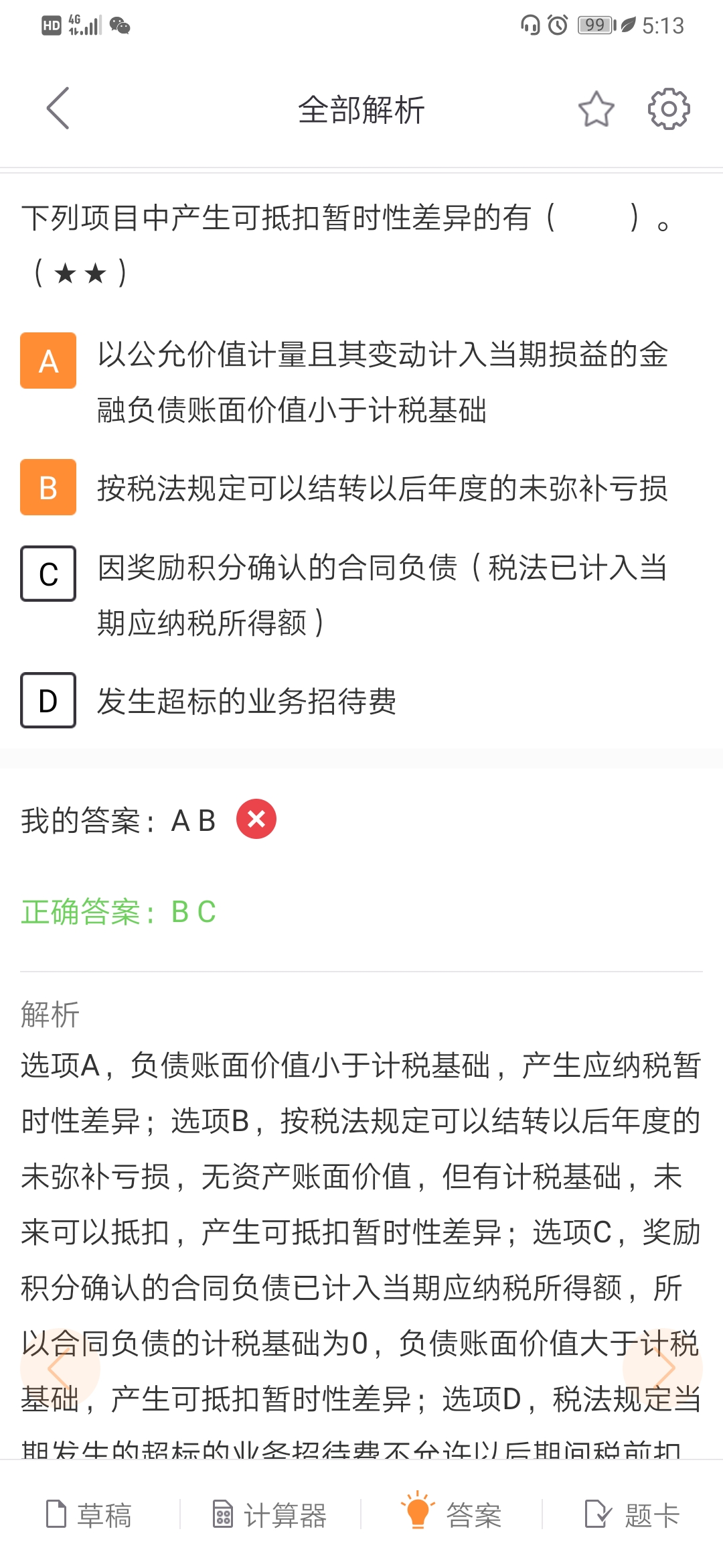 老师,我想问一下这里的c,负债的计税基础是减去未来可以抵扣的金额,而c说已经记入了,说明未来不用扣了,计税基础不是账面值嘛?