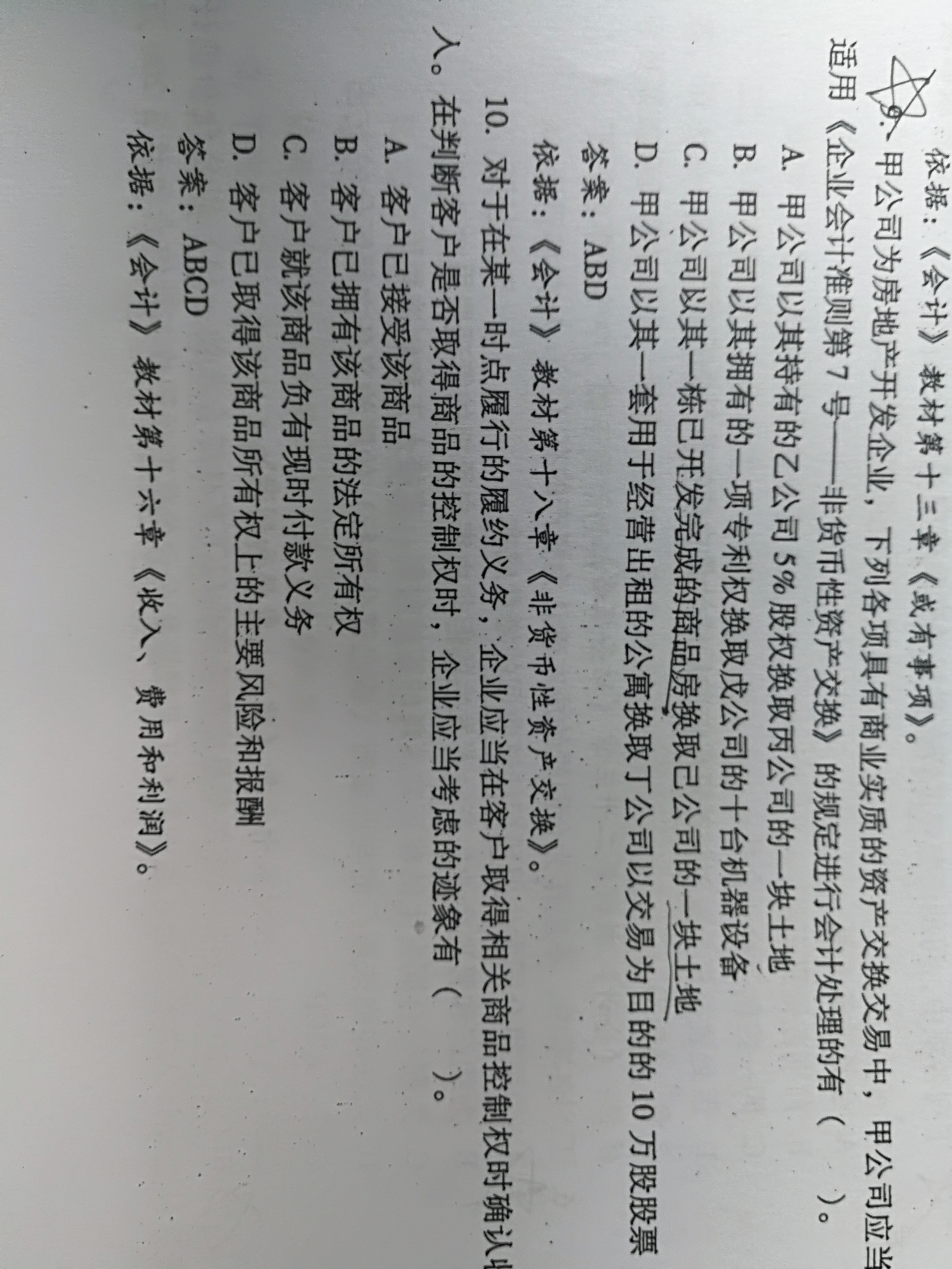 C选项中已开发的商品房属于房地产企业的存货,应当按照出售存货方式处理,适用的准则是《收入》准则。