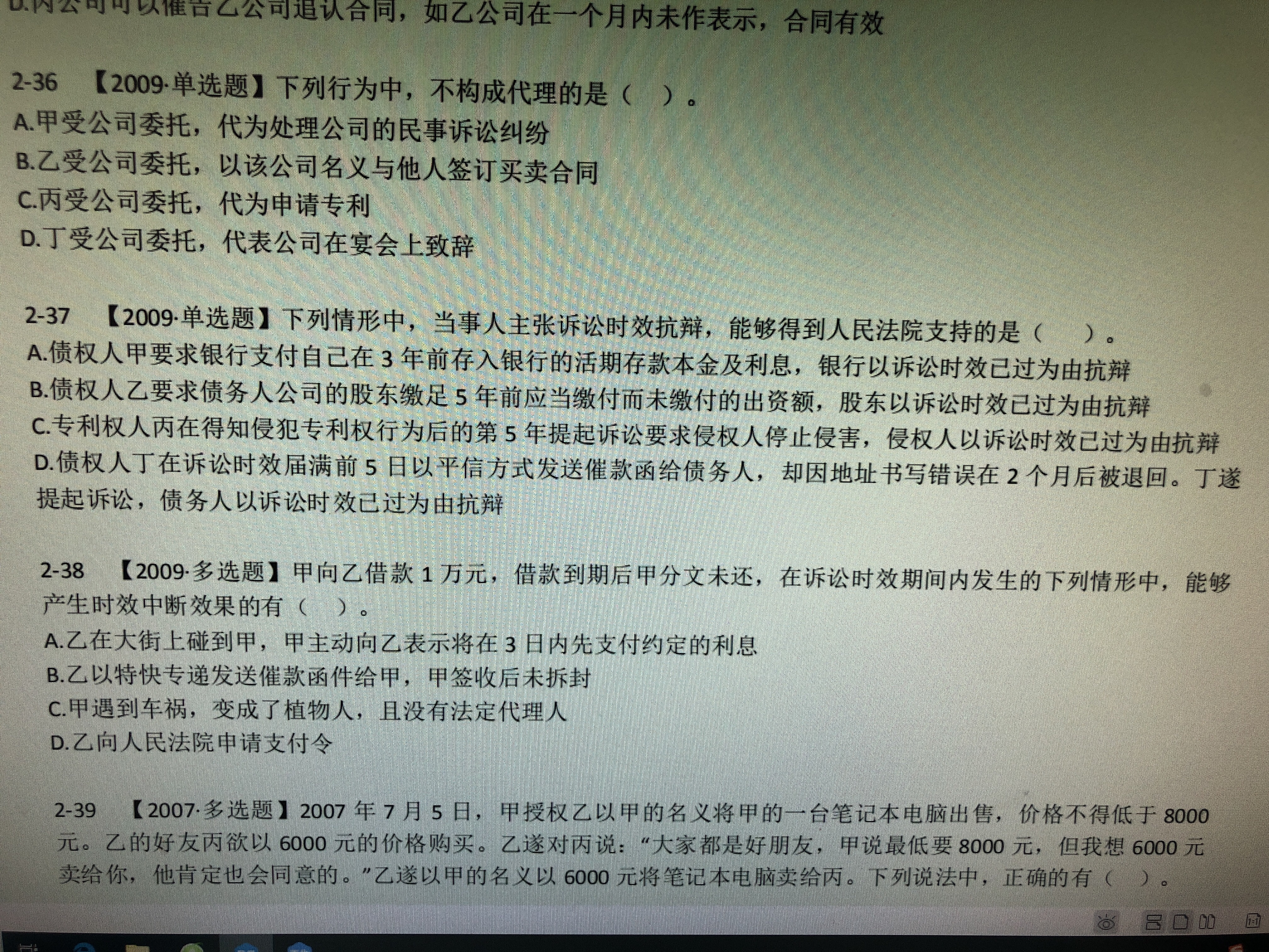 C选项,正常情况下专利权的诉讼时效是知道或应当知道的两年,但是这道题目的特别之处在于,他起诉的时候,侵害行为还在发生,这种情况下,侵害人提出诉讼时效抗辩是不予支持的。D选项,这个就是超出了5年的诉讼时效,所以应该是支持侵害人的诉讼时效抗辩。如果仍有疑问,欢迎继续提出,加油哦~