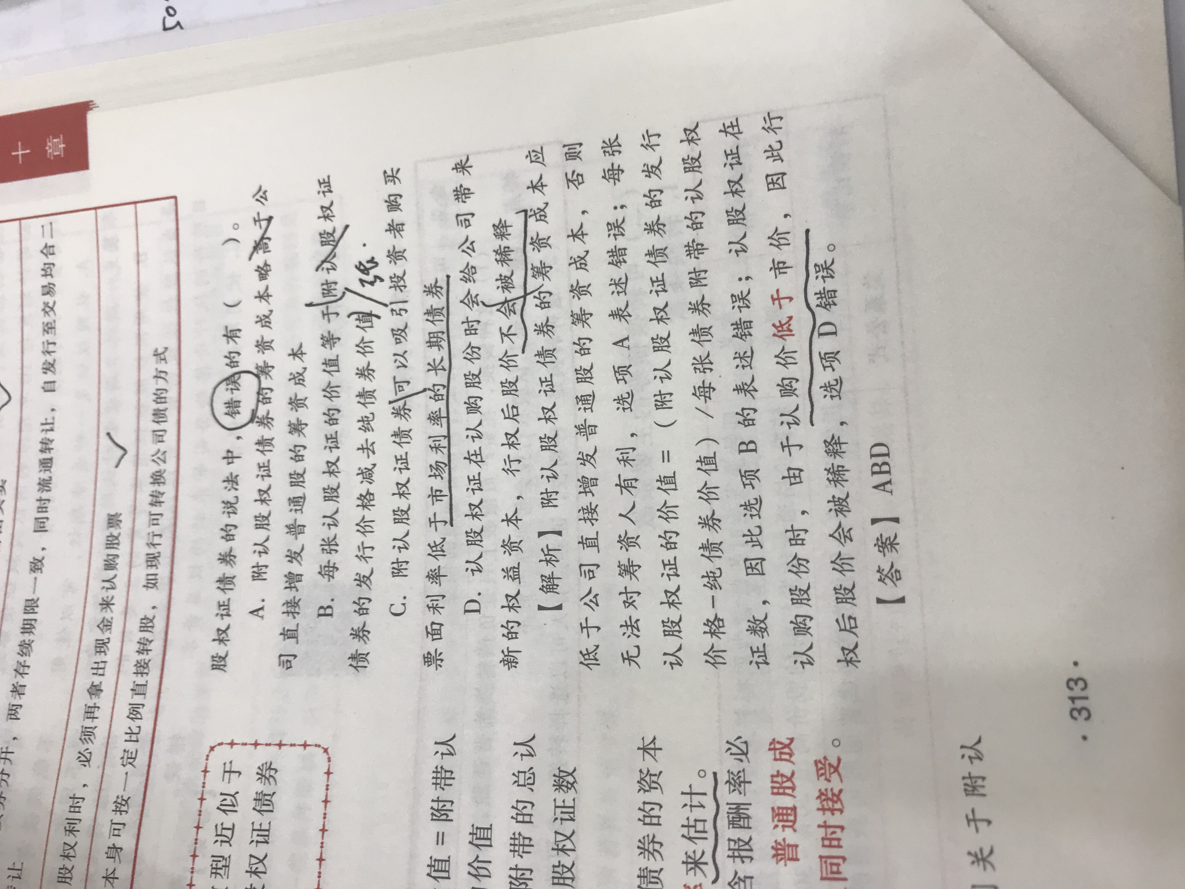 老师,您好,这道题目,C应该如何理解,附认股权证的IRr 不是要高于市场利率吗?