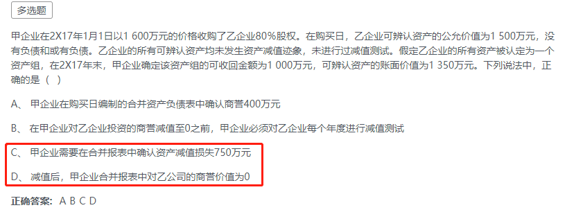 正常的步骤就是老师给出的解析,只是写的比较详细,其实不绕的,同学看一遍看懂了以后,后面自己算起来就快了哈,商誉减值这部分就是正常的计算,没有简便方法哦~