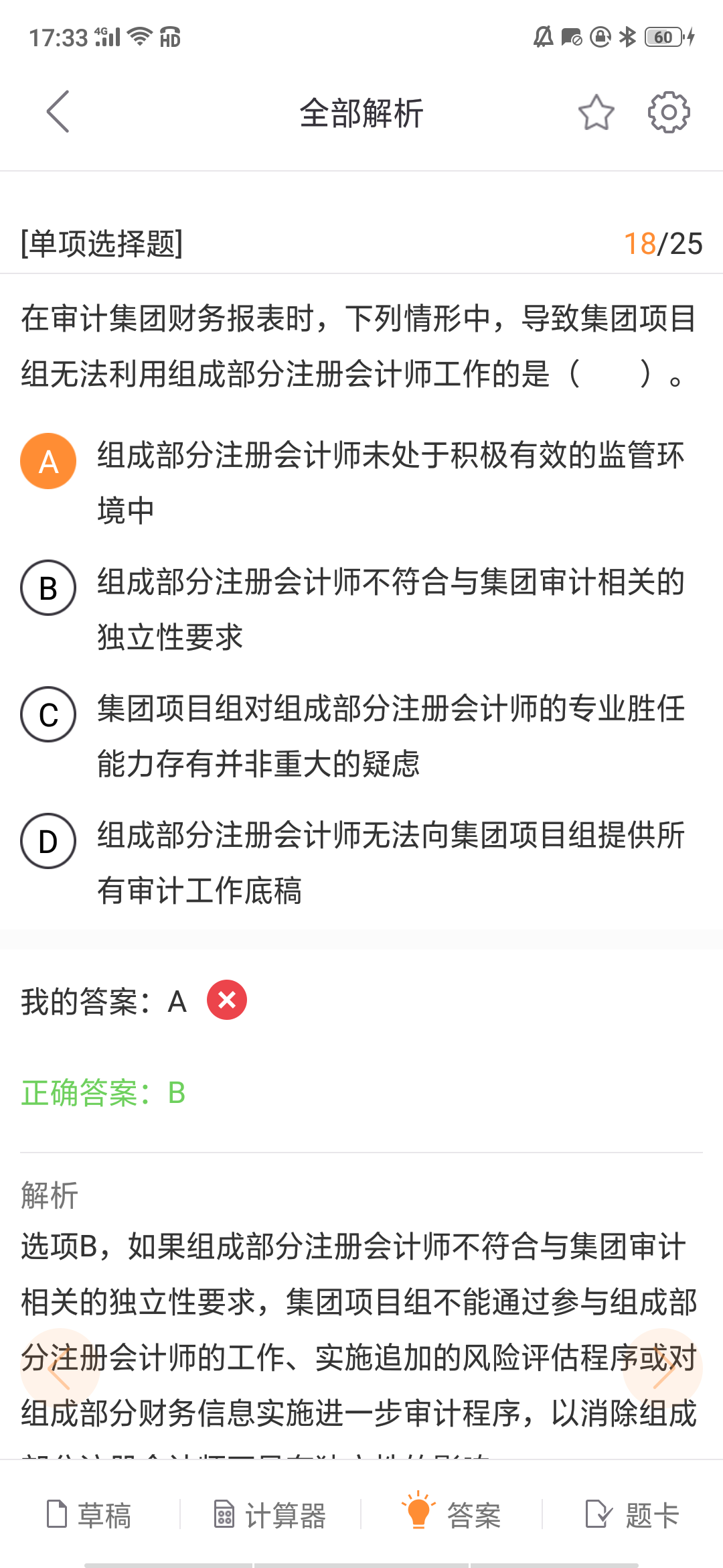 A是可以通过参与组成部分注册会计师的工作来消除的。