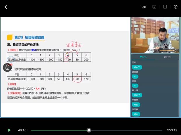老师,请问时点4不是第五年吗?为什么计算不是5+20/50=5.4呢?