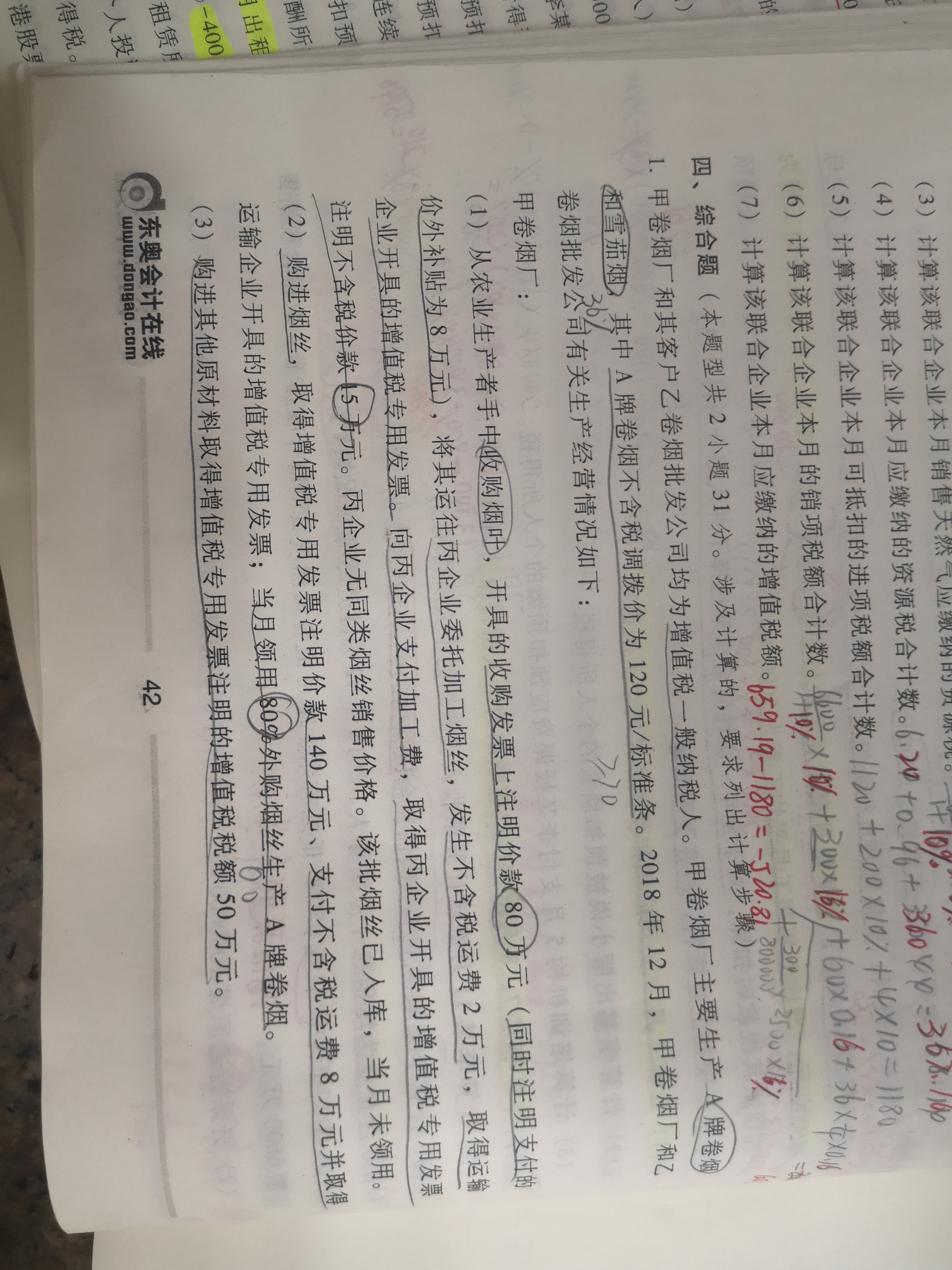 第一问怎么求啊?旁边是我算的 ,和答案有点儿差异!答案算烟叶成本的时候用的是法定补贴,而不是实际补贴!