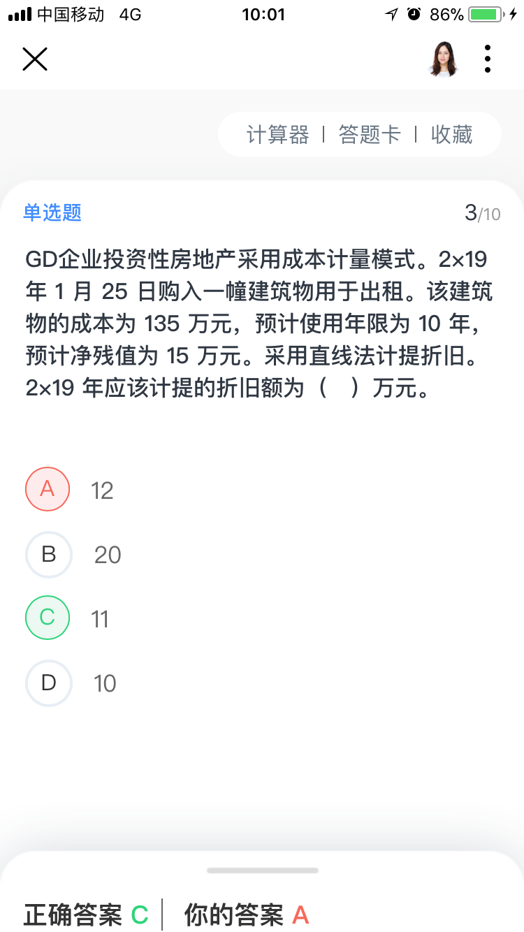 投资性房地产采用成本法计量,跟固定资产一样,本月增加,下月计提折旧,所以提的是11个月的折旧额哦~