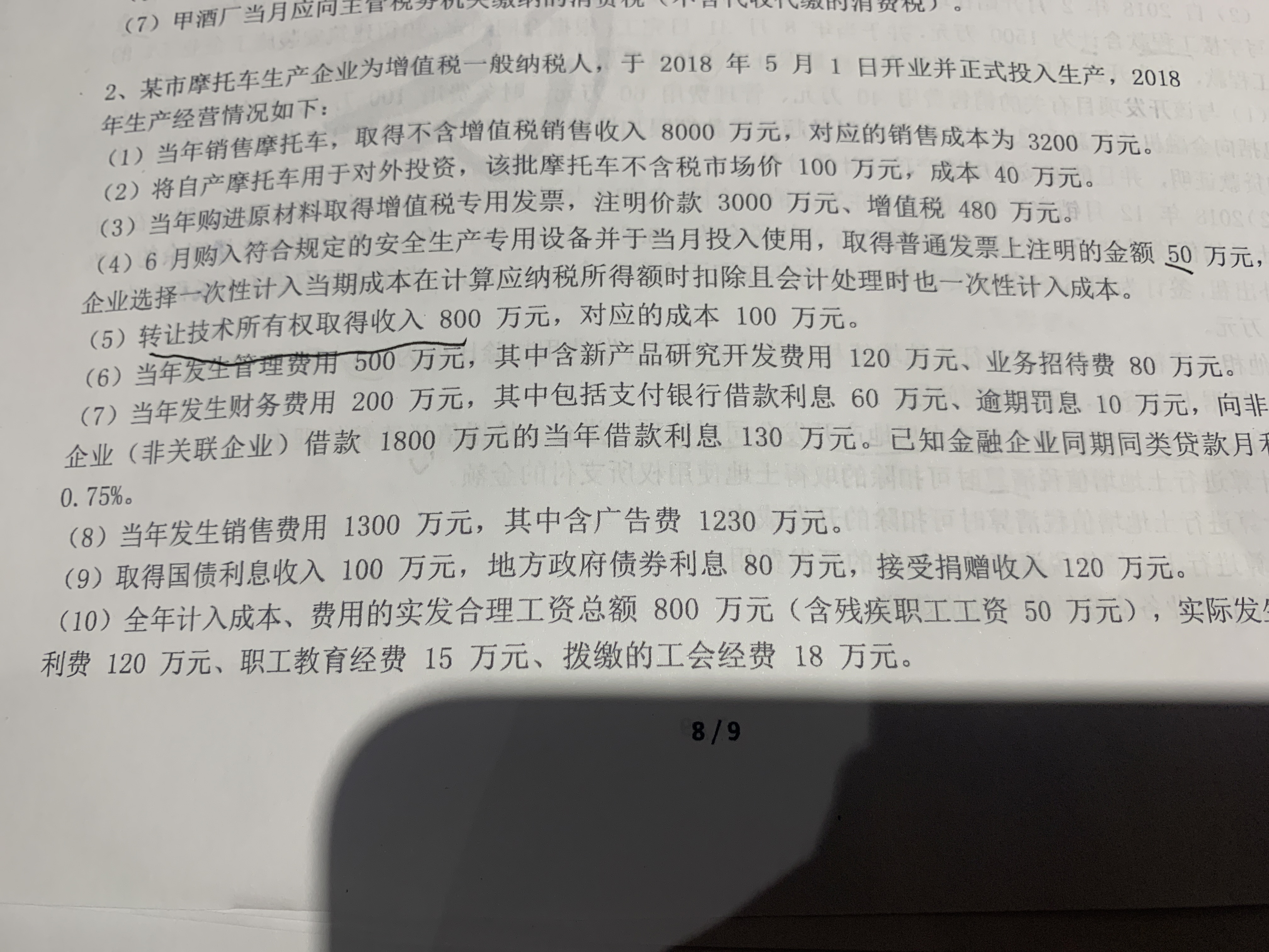 这道题中,转让技术所有权不算卖无形资产吗?怎么不计算增值税呢?